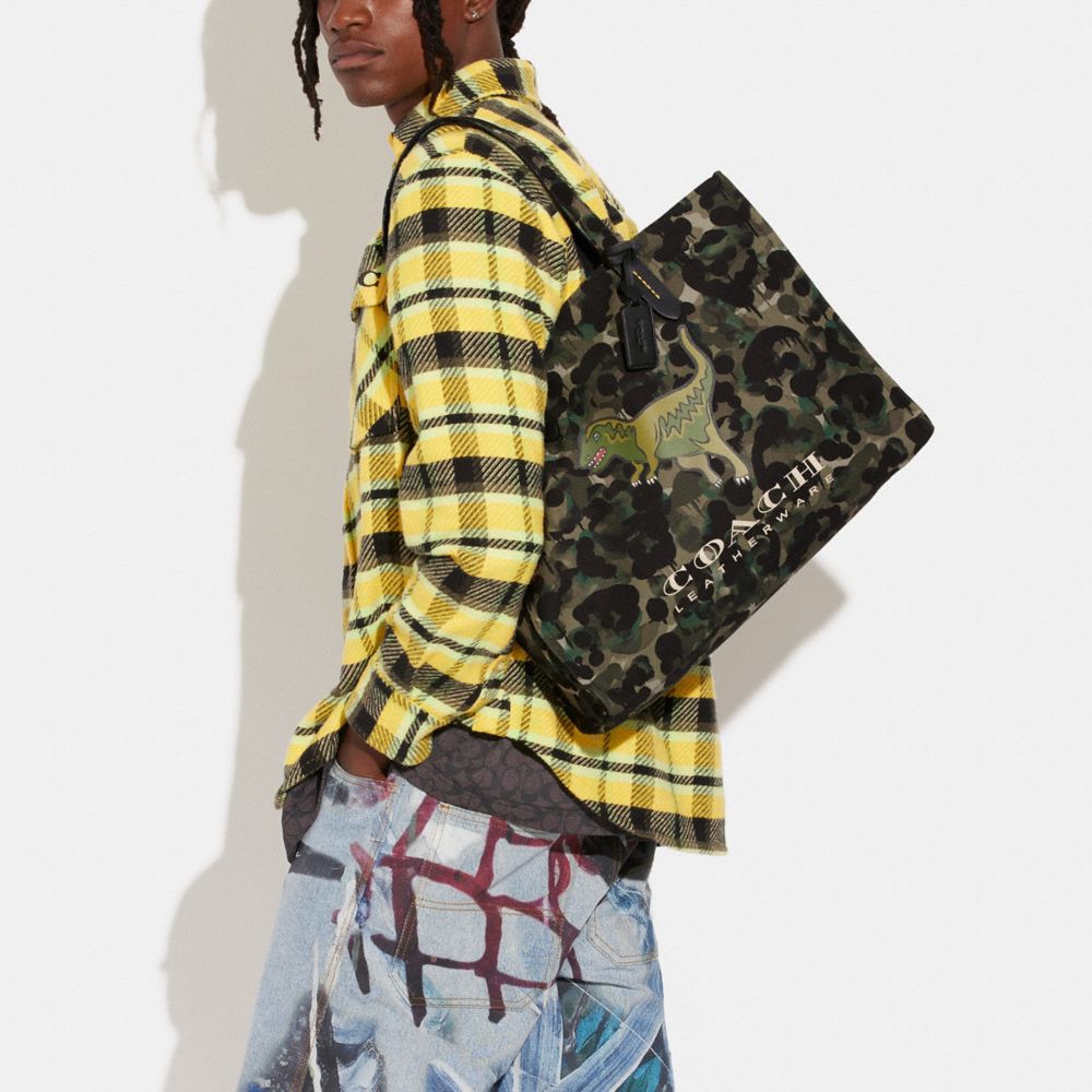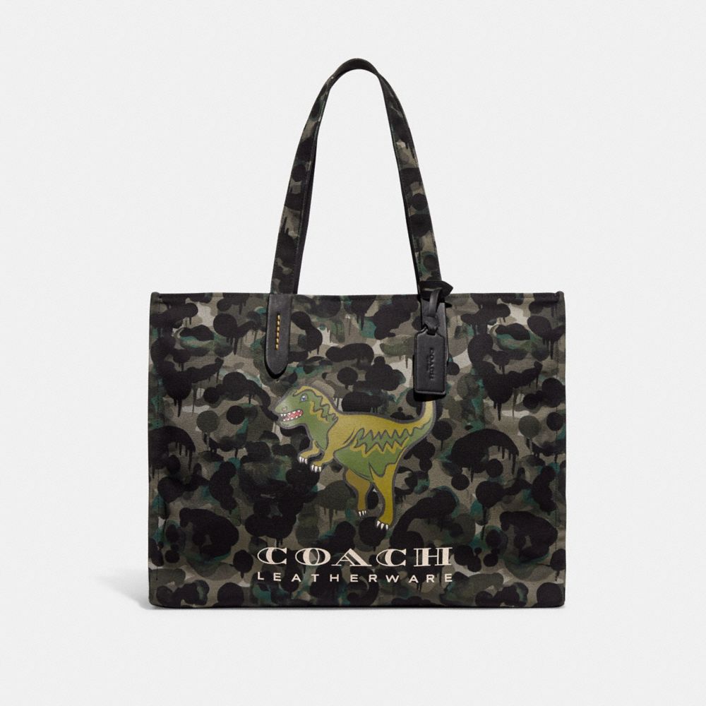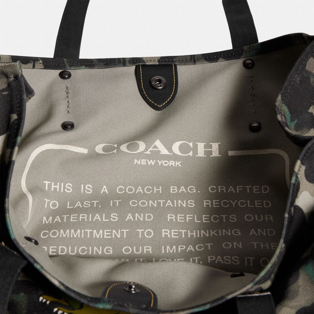 100 PERCENT RECYCLED CANVAS TOTE 42 WITH CAMO PRINT AND REXY (COACH CF079)