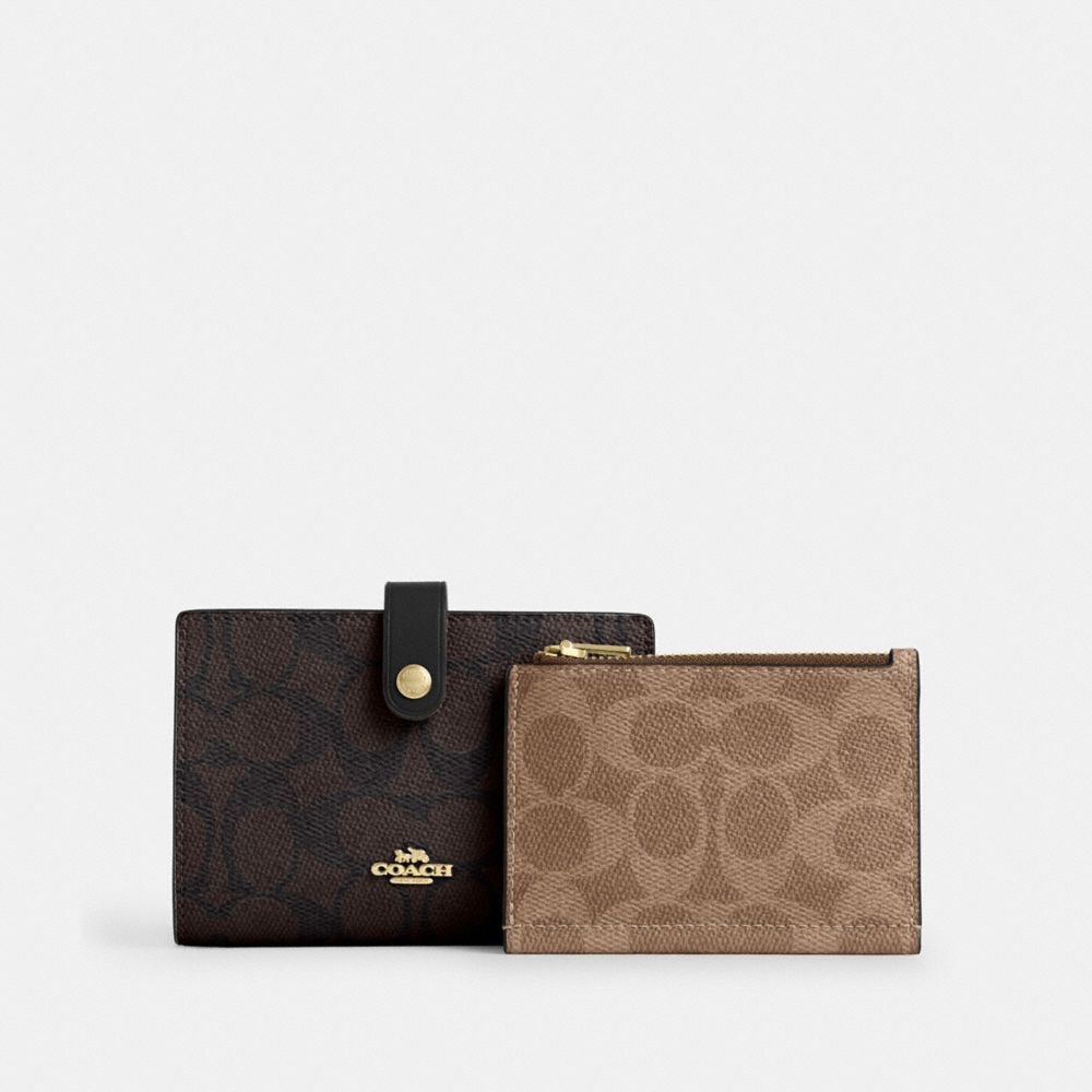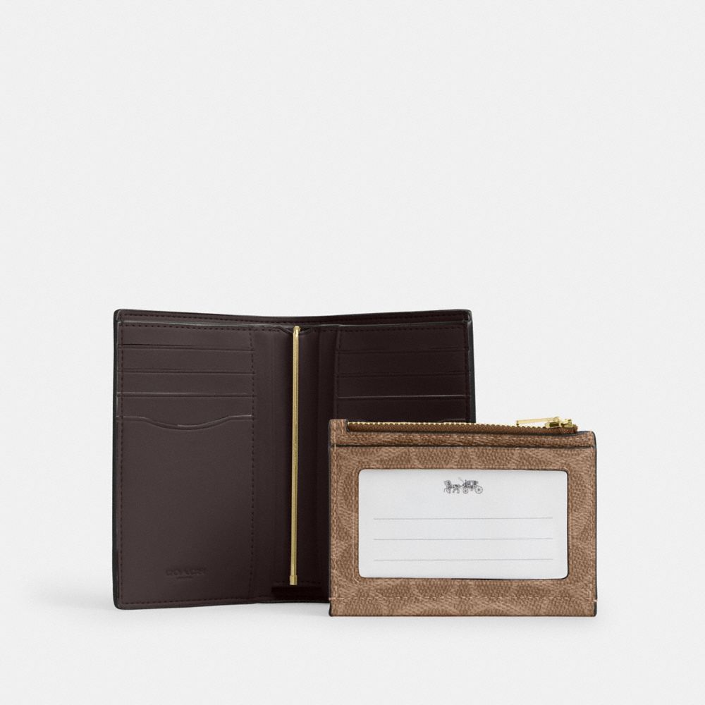 COACH FACTORY OUTLET PRICE CHART - CBK54 - 2-IN-1 WALLET IN BLOCKED SIGNATURE CANVAS - GOLD/WALNUT/TAN