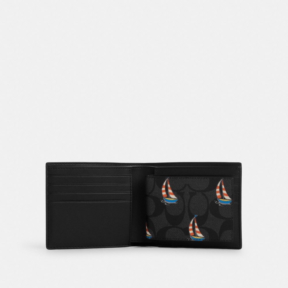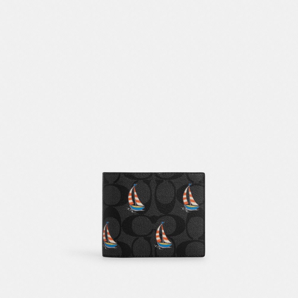 COACH FACTORY OUTLET PRICE CHART - CU121 - 3 IN 1 WALLET IN SIGNATURE CANVAS WITH SAILBOAT PRINT - CHARCOAL MULTI