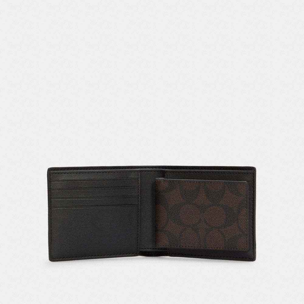 Signature coated canvas and smooth leather| Eight credit card slots| Full-length bill compartments| Removable insert with ID window and two credit card slots| 4 1/4" (L) x 3 3/4" (H) x 3/4" (W)Style No. C7069