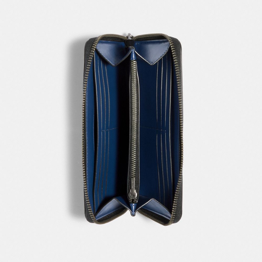 Signature coated canvas and refined calf leather| 12 credit card slots| Full-length bill compartments| Zip coin pocket| Zip-around closure| Outside open pocket| 7 1/2" (L) x 4" (H) x 3/4" (W)| Fits all phone sizes up to an iPhone X and Samsung S7 Edge