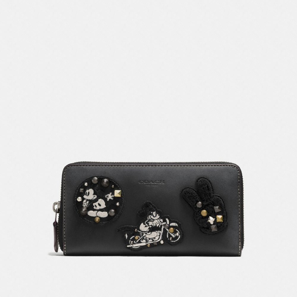 ACCORDION ZIP WALLET IN GLOVE CALF LEATHER WITH MICKEY PATCHES (COACH F59340)