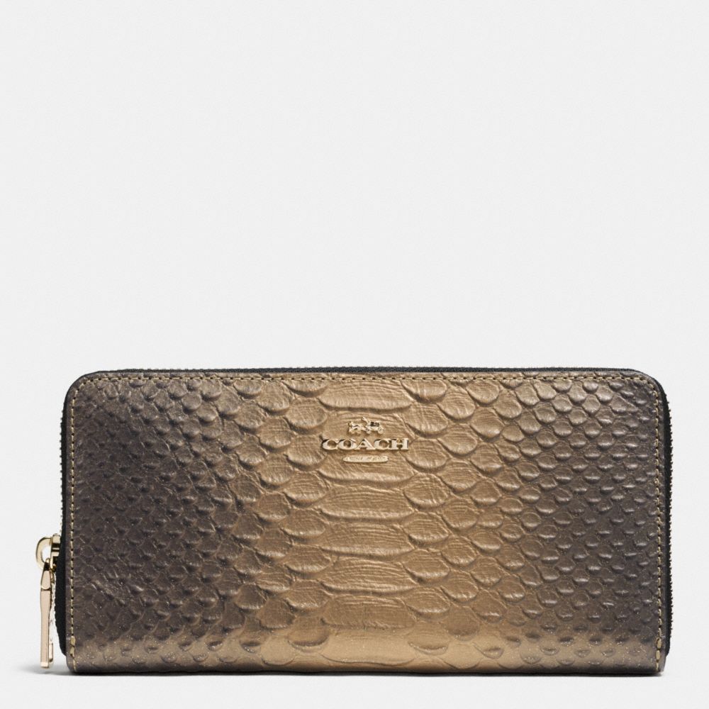 ACCORDION ZIP WALLET IN METALLIC SNAKE EMBOSSED LEATHER (COACH F53681)