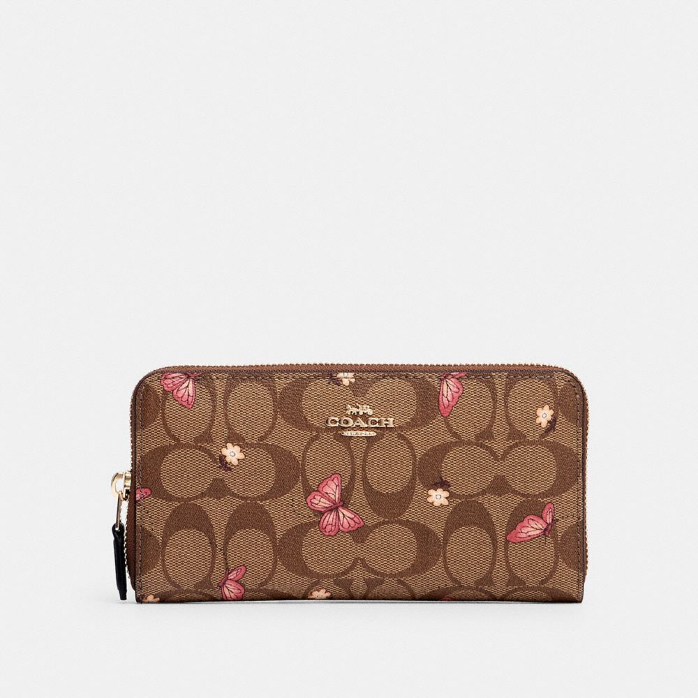 COACH FACTORY OUTLET PRICE CHART - 2858 - ACCORDION ZIP WALLET IN SIGNATURE CANVAS WITH BUTTERFLY PRINT - IM/KHAKI PINK MULTI