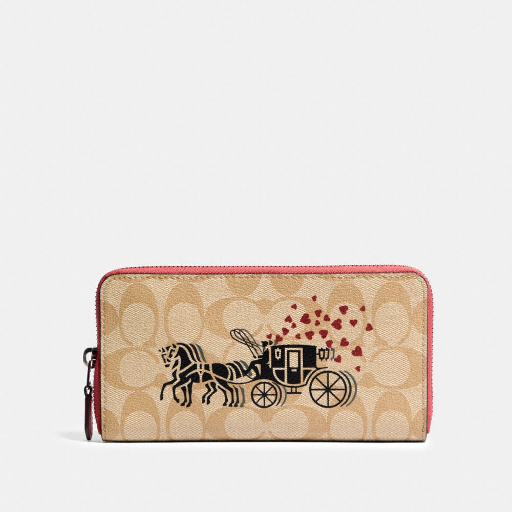 ACCORDION ZIP WALLET IN SIGNATURE CANVAS WITH HORSE AND CARRIAGE HEARTS MOTIF (COACH 91571)