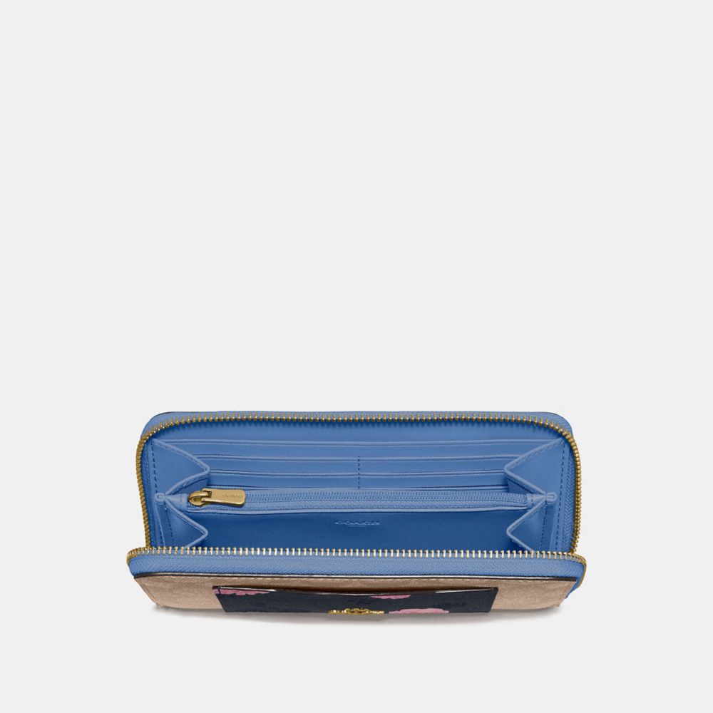 ACCORDION ZIP WALLET IN SIGNATURE CANVAS WITH PAINTED PEONY PRINT POCKET (COACH F73011)