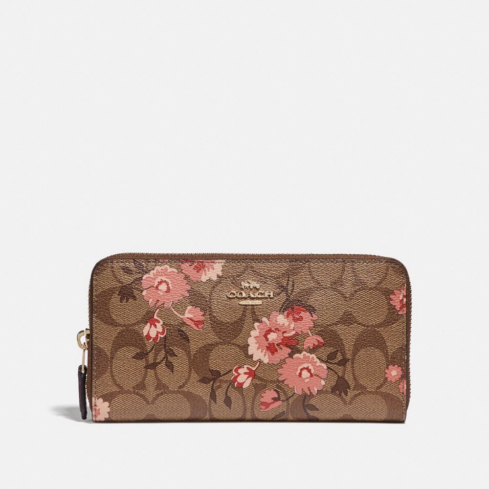 COACH FACTORY OUTLET PRICE CHART - F78018 - ACCORDION ZIP WALLET IN SIGNATURE CANVAS WITH PRAIRIE DAISY CLUSTER PRINT - KHAKI CORAL MULTI/IMITATION GOLD