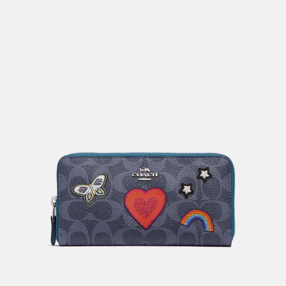 COACH FACTORY OUTLET PRICE CHART - F26784 - ACCORDION ZIP WALLET IN SIGNATURE CANVAS WITH SOUVENIR EMBROIDERY - SILVER/DENIM