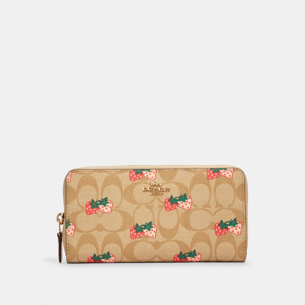 ACCORDION ZIP WALLET IN SIGNATURE CANVAS WITH STRAWBERRY PRINT (COACH 91826)