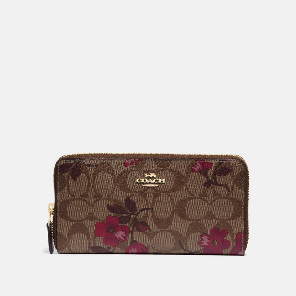 COACH FACTORY OUTLET PRICE CHART - F87716 - ACCORDION ZIP WALLET IN SIGNATURE CANVAS WITH VICTORIAN FLORAL PRINT - IM/KHAKI BERRY MULTI