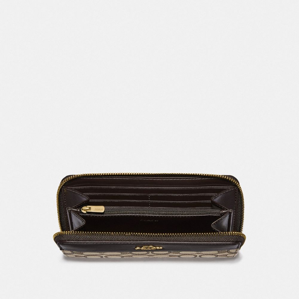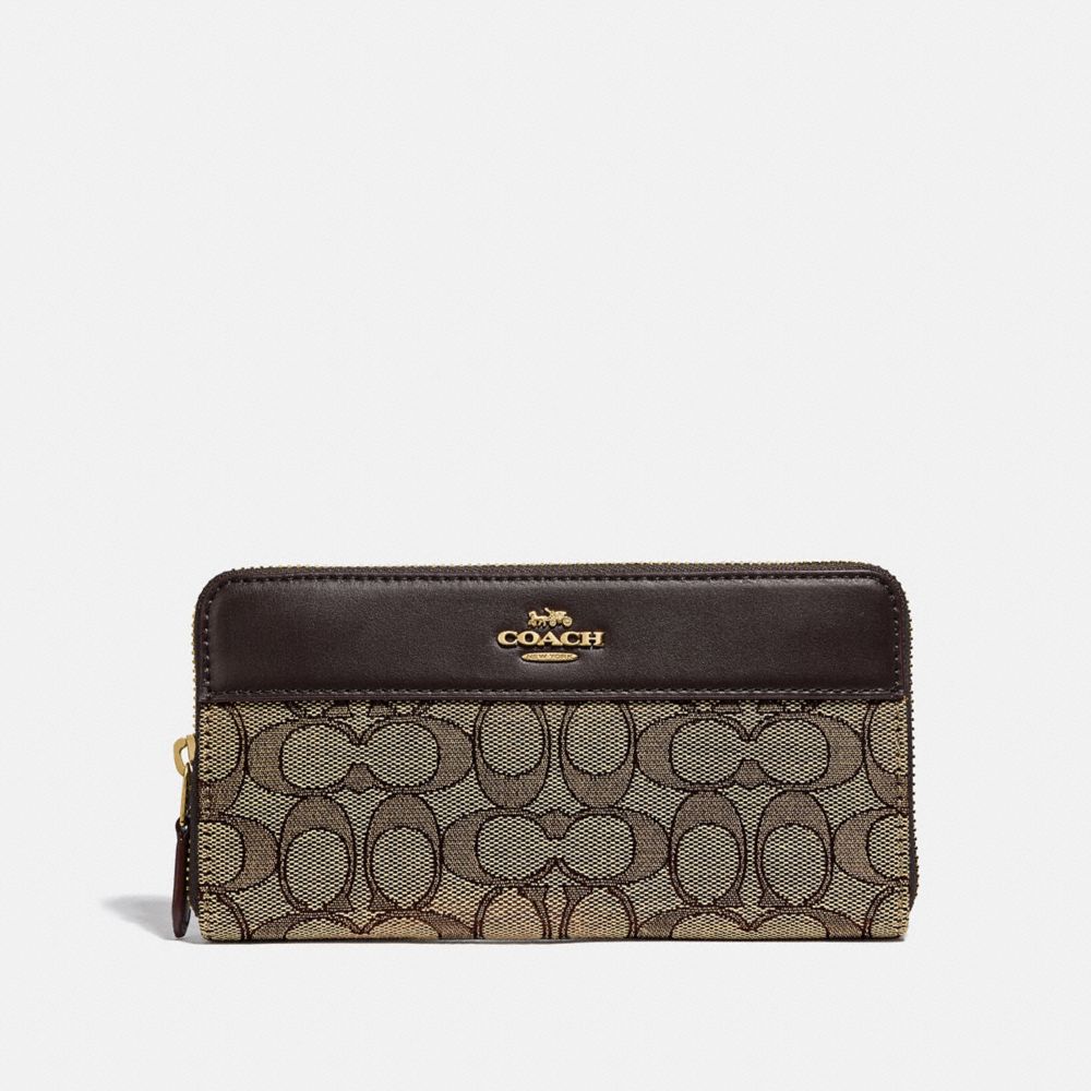 COACH FACTORY OUTLET PRICE CHART - F76638 - ACCORDION ZIP WALLET IN SIGNATURE JACQUARD WITH STRIPE - IM/KHAKI/BROWN