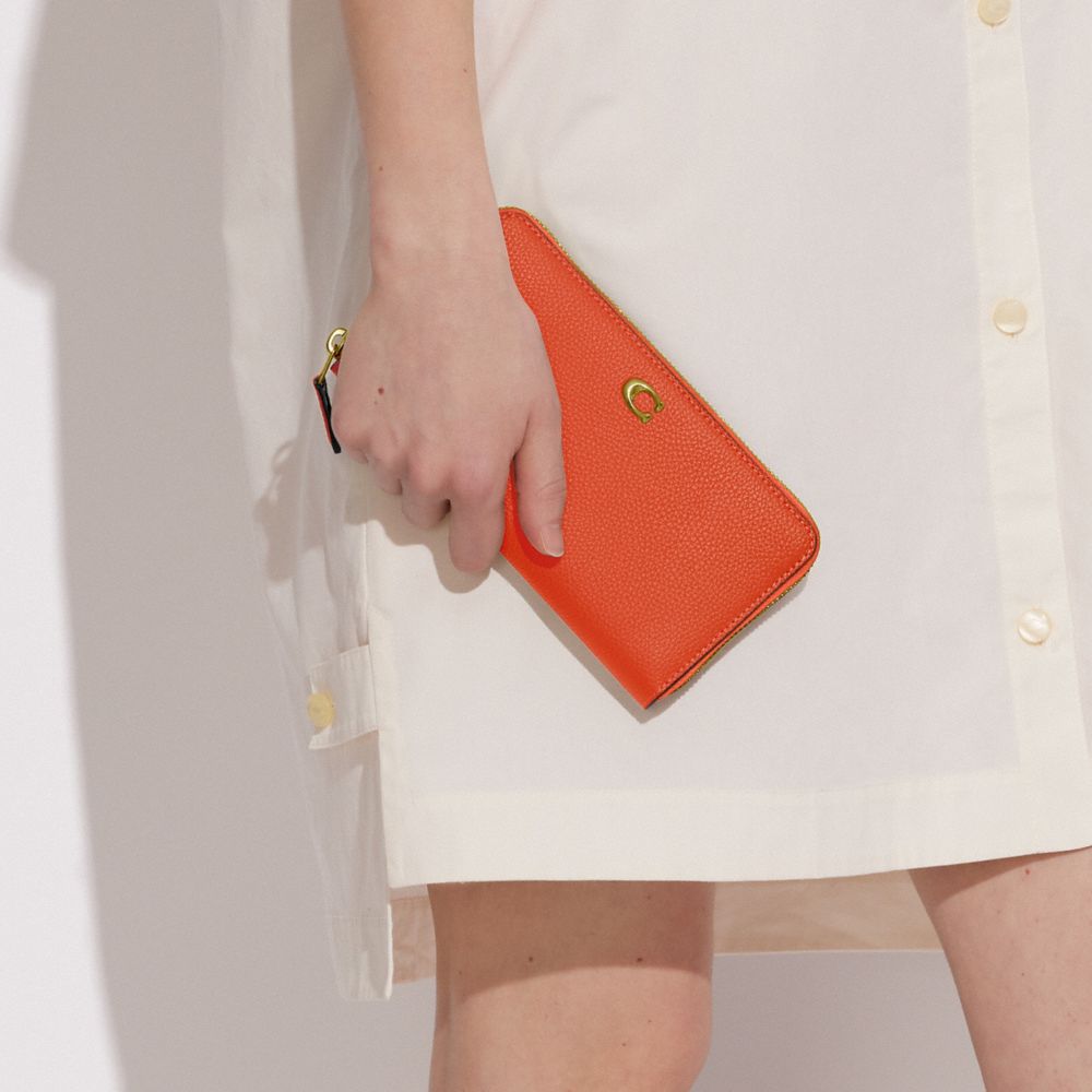 COACH FACTORY OUTLET PRICE CHART - CC489 - ACCORDION ZIP WALLET - BRASS/SUN ORANGE