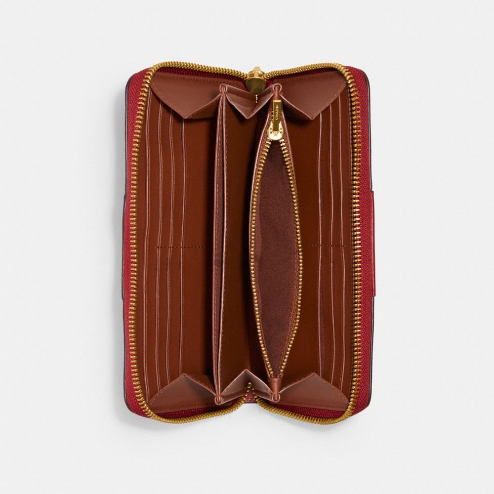 COACH FACTORY OUTLET PRICE CHART - CF264 - ACCORDION ZIP WALLET IN COLORBLOCK SIGNATURE CANVAS WITH HEART PRINT - BRASS/TAN RED APPLE