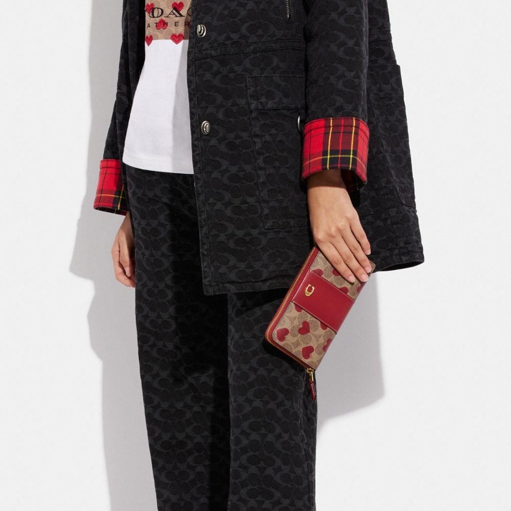 ACCORDION ZIP WALLET IN COLORBLOCK SIGNATURE CANVAS WITH HEART PRINT (COACH CF264)