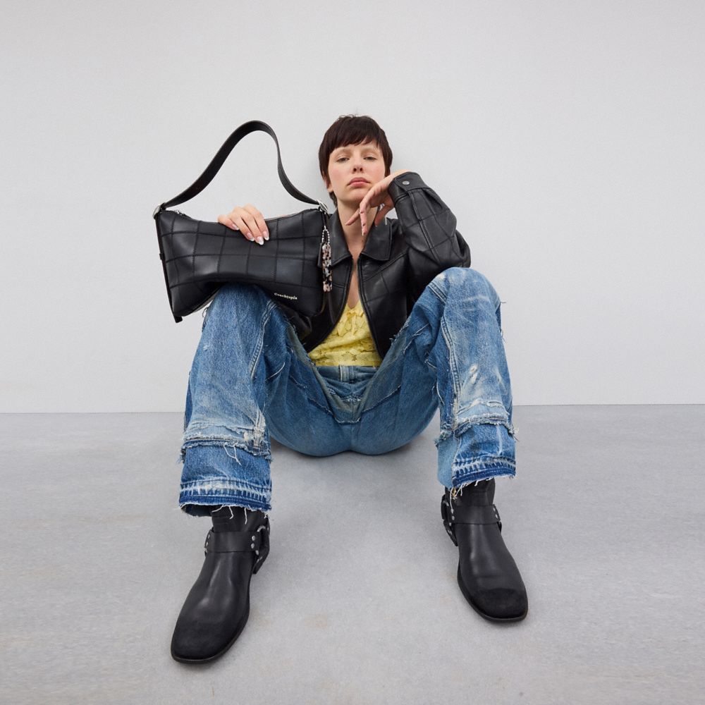 | Upcrafted™ leather | Lining: recycled polyester | Hangtag: 70% recycled acrylic plastic | Top zip closure | Inside slip pocket | Adjustable shoulder strap with 16.5" drop | Detachable crossbody strap with 22.8" drop | 12.6" (L) x 8" (H) x 3.3" (W)