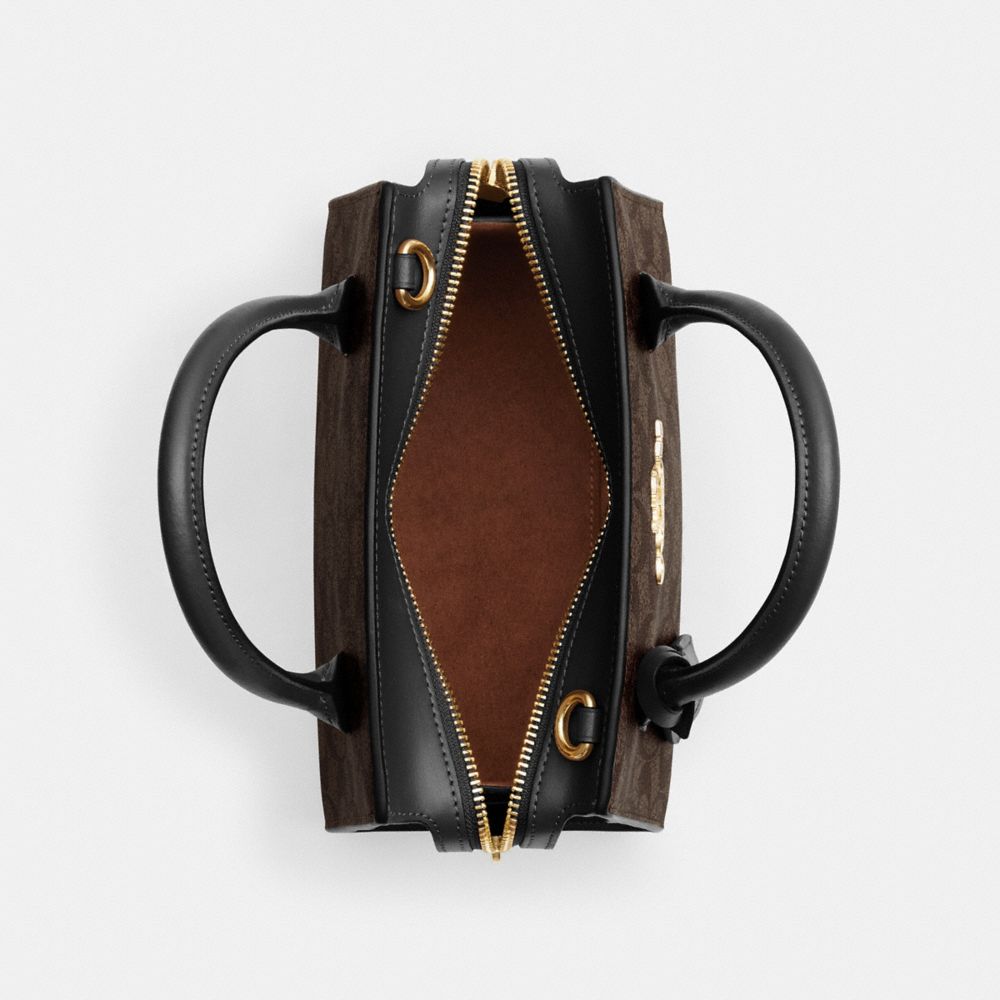 | Signature coated canvas and smooth leather | Inside multifunction pocket | Zip closure, fabric lining | Handles with 3 1/4" drop | Detachable strap with 21 3/4" drop for shoulder or crossbody wear | Four protective feet at base | 8 3/4" (L) x 6 1/2" (H) x 4 1/2" (W)|Style No. CP083|