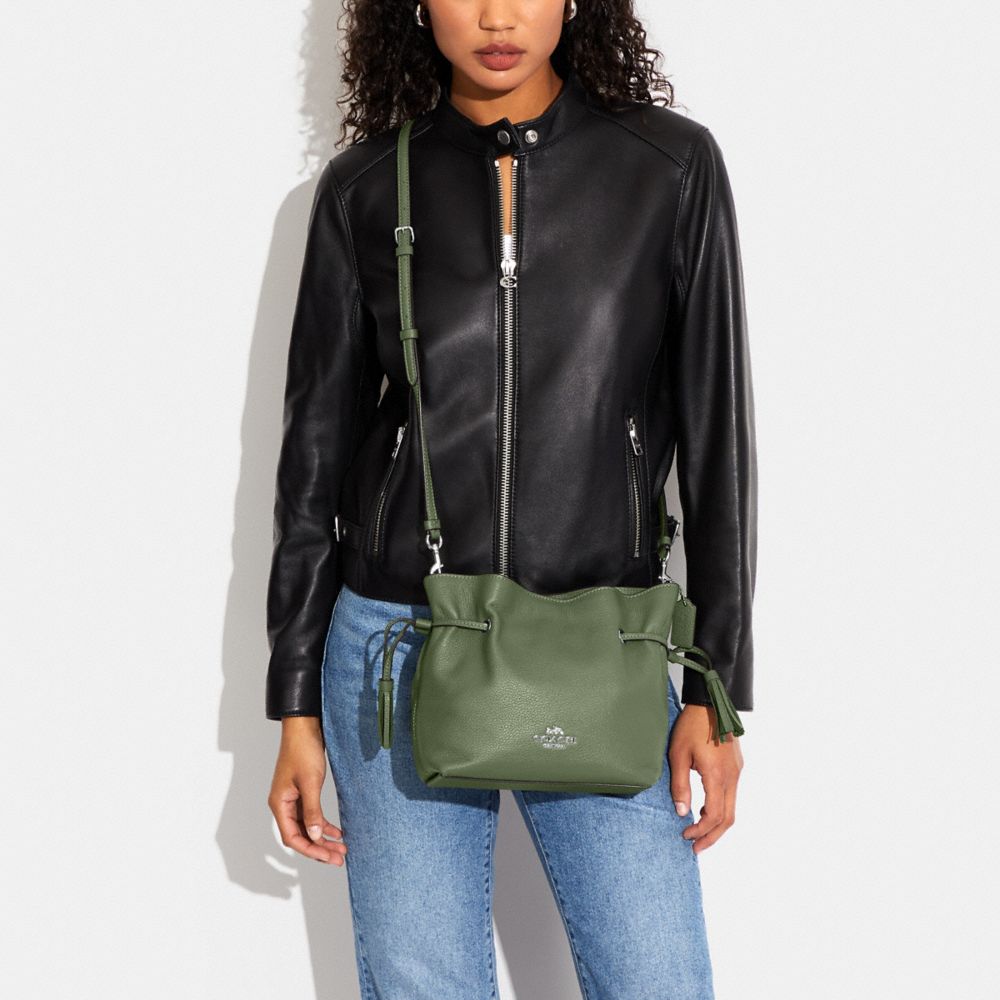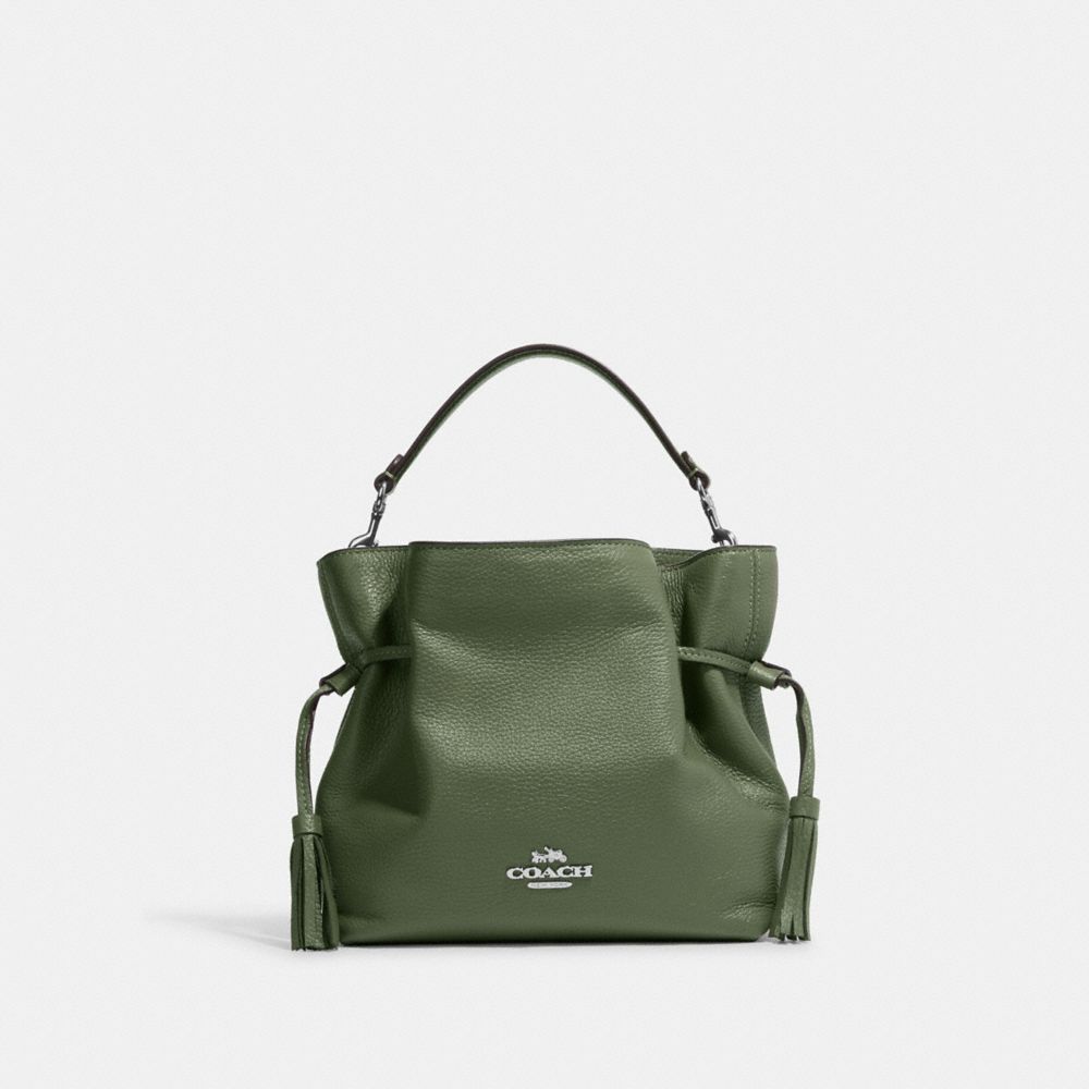 | Refined pebble leather | Inside zip and multifunction pockets | Drawstring and magnetic snap closures, fabric lining | Detachable handle with 5 1/4" drop | Detachable strap with 21" drop for shoulder or crossbody wear | 9 1/2" (L) x 7 3/4" (H) x 3 3/4" (W)|Style No. CH197|
