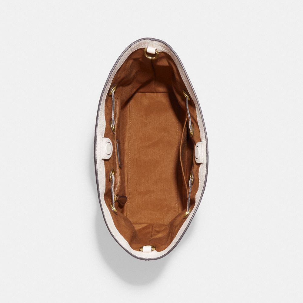 | Refined pebble leather | Inside zip and multifunction pockets | Drawstring and magnetic snap closures, fabric lining | Detachable handle with 5 1/4" drop | Detachable strap with 21" drop for shoulder or crossbody wear | 9 1/2" (L) x 7 3/4" (H) x 3 3/4" (W)|Style No. CH349|