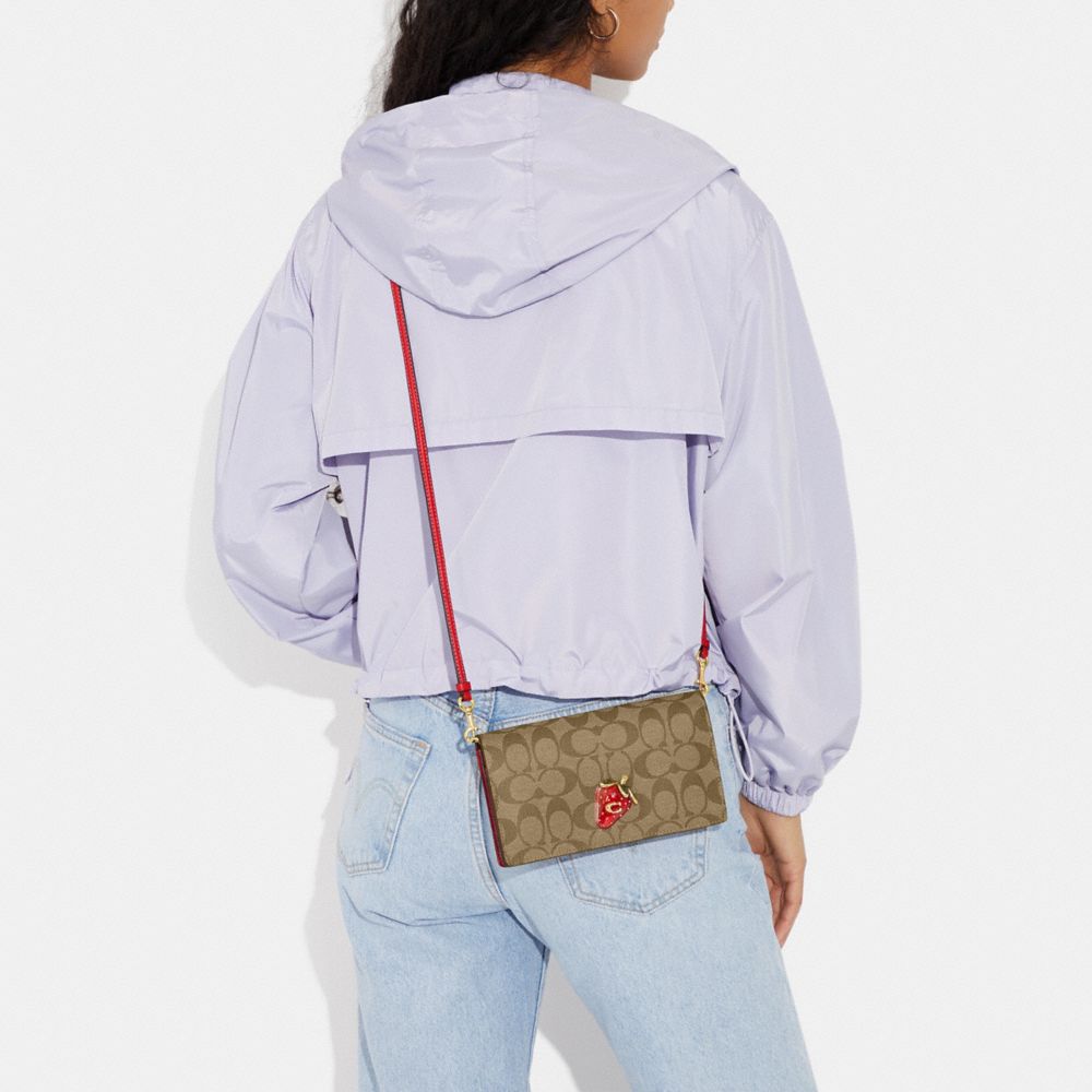 ANNA FOLDOVER CLUTCH CROSSBODY IN SIGNATURE CANVAS WITH STRAWBERRY (COACH CH547)