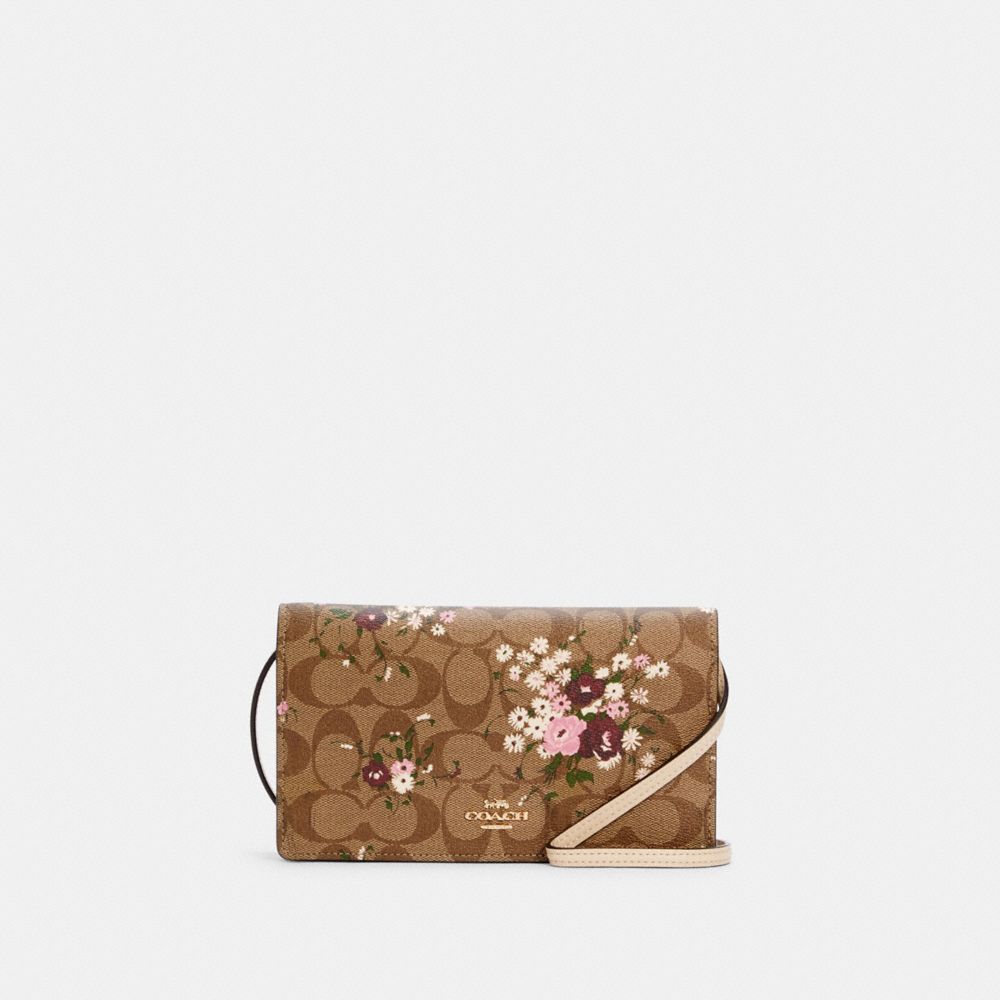ANNA FOLDOVER CROSSBODY CLUTCH IN SIGNATURE CANVAS WITH EVERGREEN FLORAL PRINT (COACH C0035)