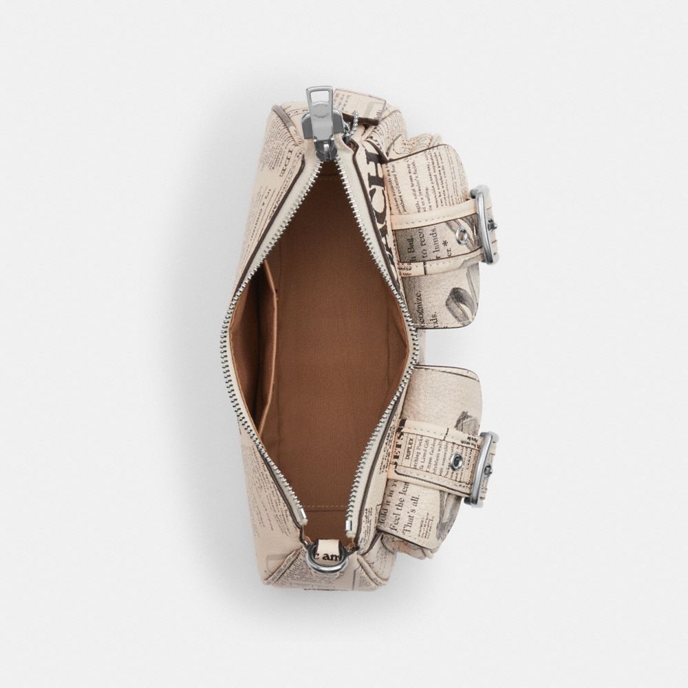 COACH FACTORY OUTLET PRICE CHART - CDC12 - ASHTON SHOULDER BAG WITH NEWSPAPER PRINT - SILVER/CHALK MULTI