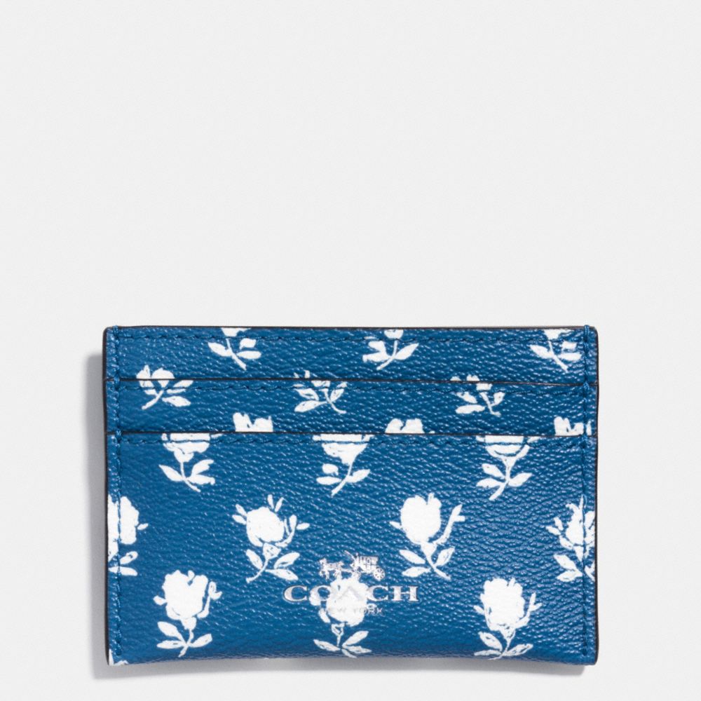 COACH FACTORY OUTLET PRICE CHART - F63694 - BADLANDS FLORAL CARD CASE IN PEBBLE EMBOSSED CANVAS - SILVER/BLUE MULTICOLOR