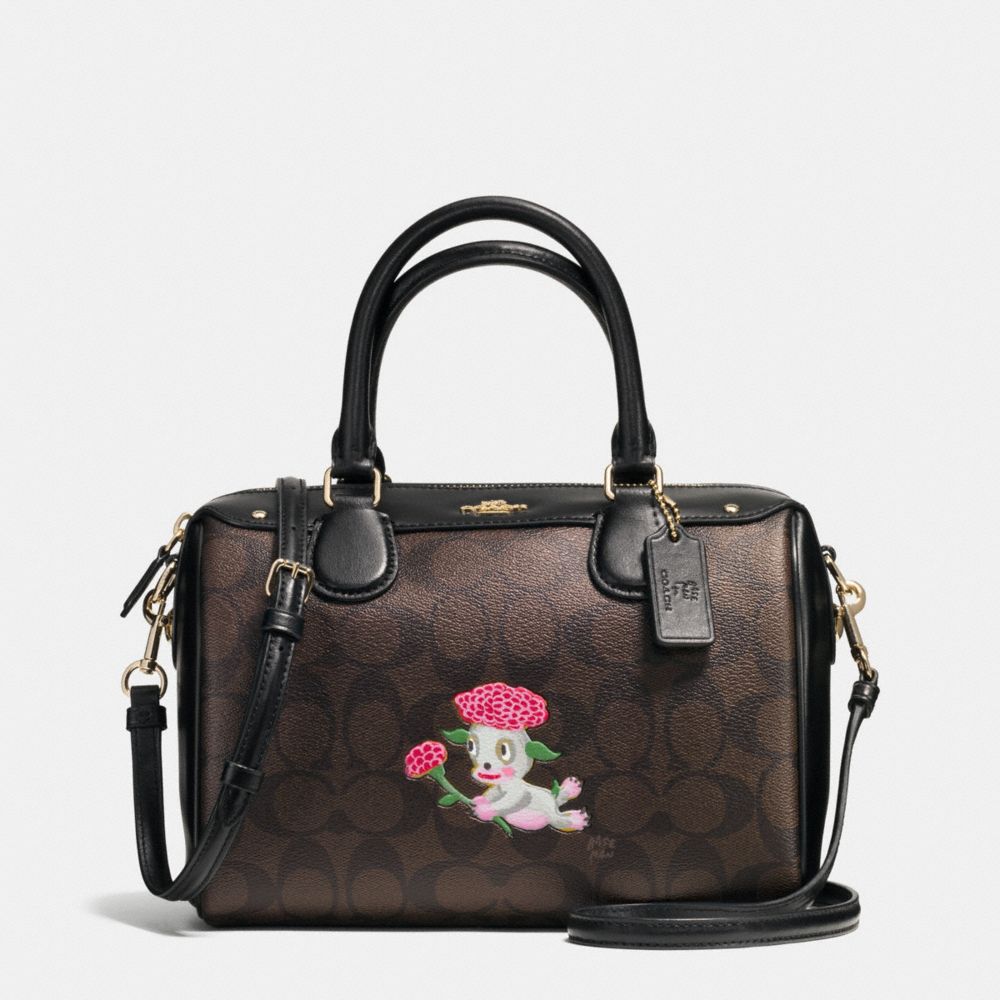 COACH FACTORY OUTLET PRICE CHART - F57906 - BASEMAN X COACH LOU MINI BENNETT SATCHEL IN SIGNATURE COATED CANVAS - IMITATION GOLD/BROWN/BLACK