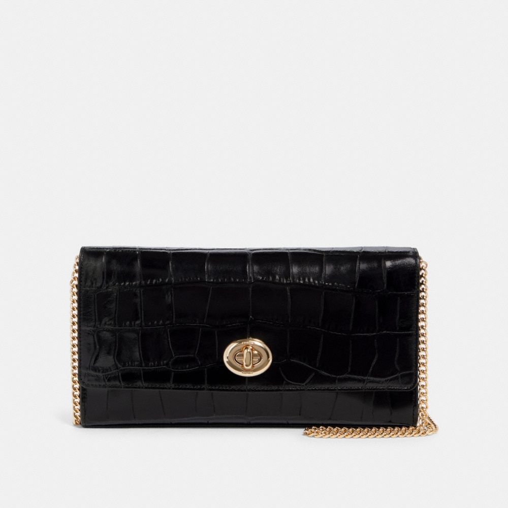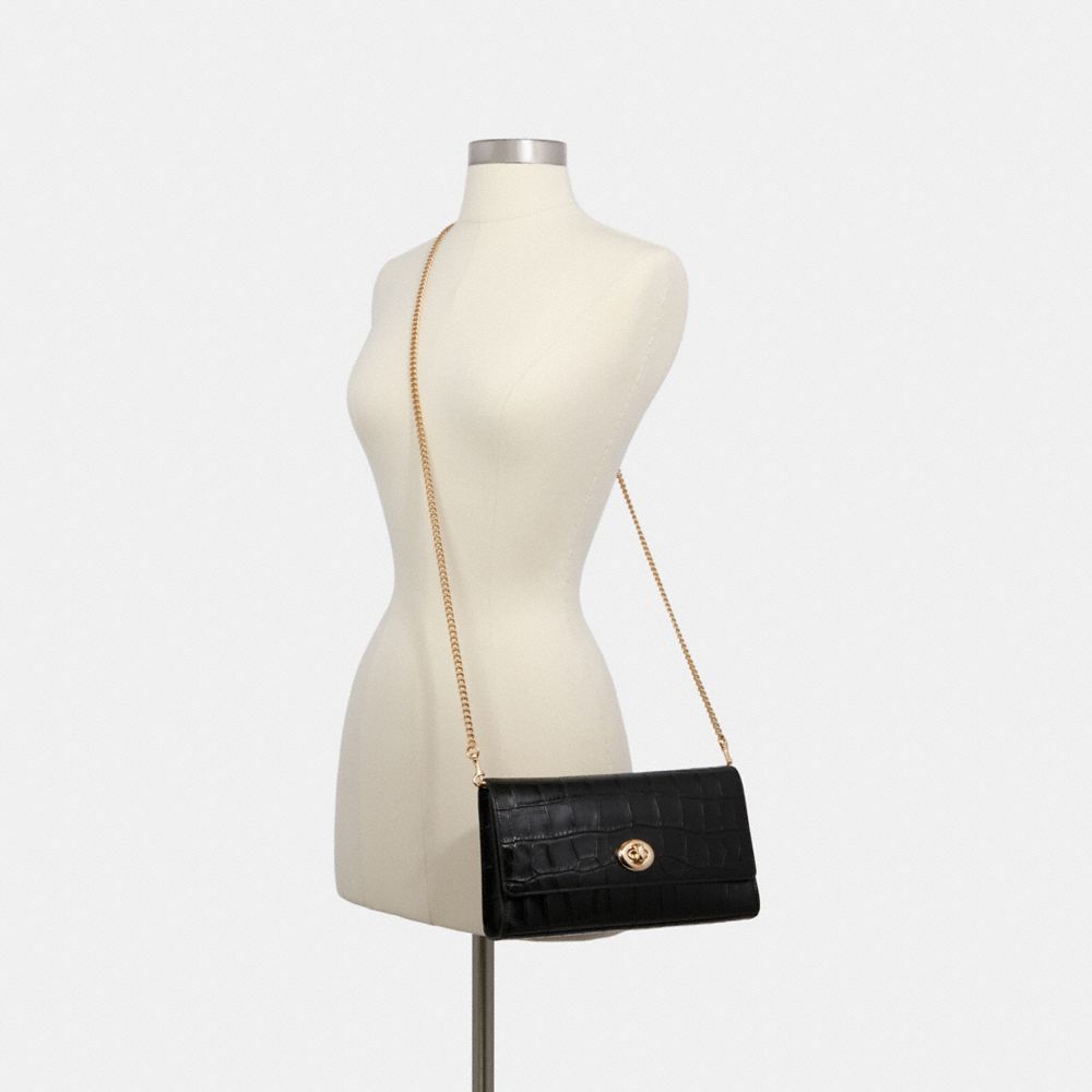 Crocodile-embossed leather| Two credit card slots| Inside multifunction pocket| Turnlock closure, fabric lining| Outside slip pocket| Detachable strap with 23" drop for shoulder or crossbody wear| 9 3/4" (L) x 5 1/4" (H) x 1 3/4" (W)