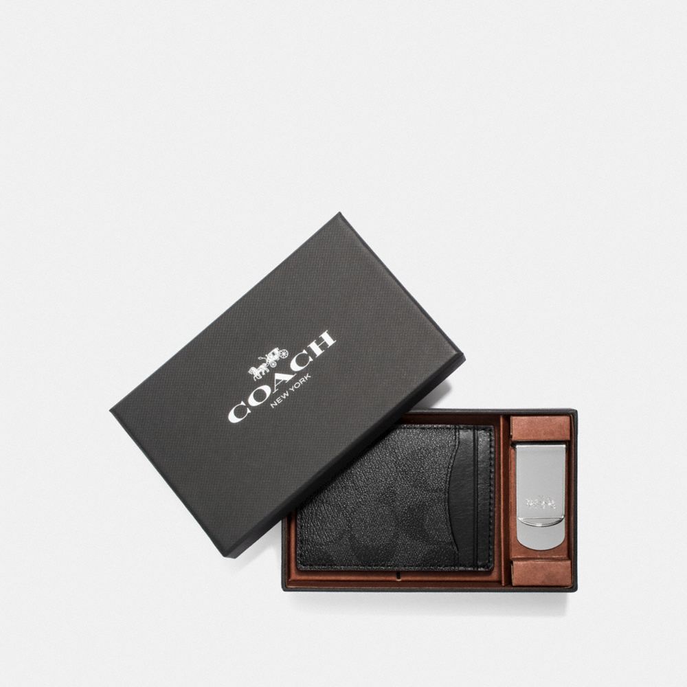 COACH FACTORY OUTLET PRICE CHART - F41344 - BOXED 3-IN-1 CARD CASE GIFT SET IN SIGNATURE CANVAS - BLACK BLACK OXBLOOD/NICKEL
