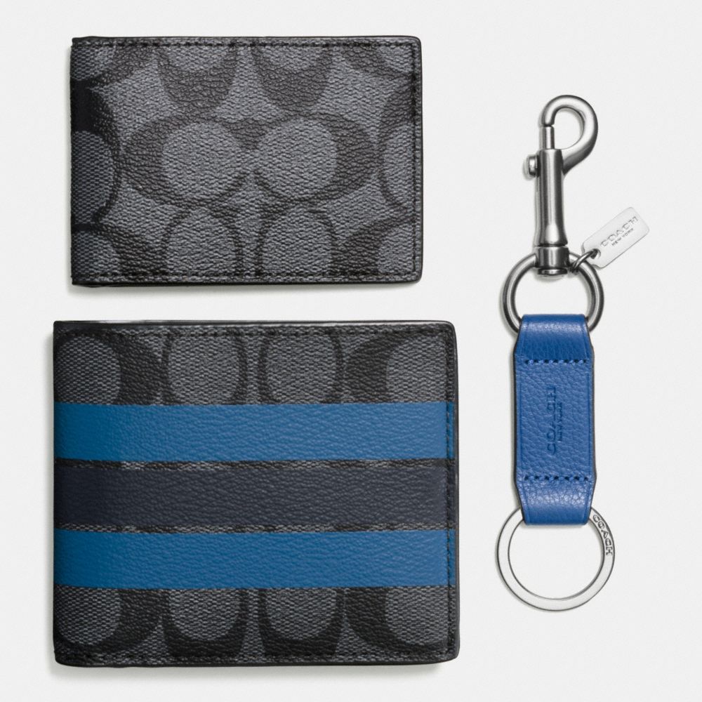 BOXED 3-IN-1 WALLET IN VARSITY SIGNATURE COATED CANVAS (COACH F55485)