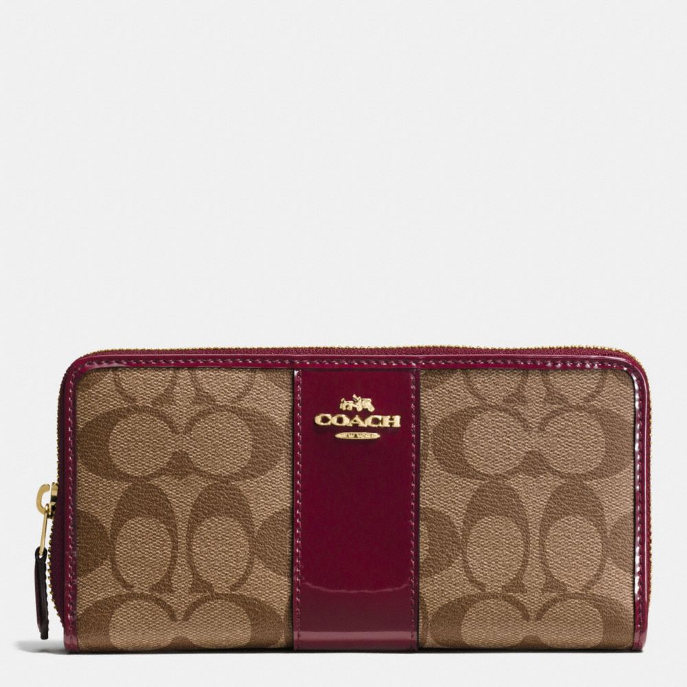 COACH FACTORY OUTLET PRICE CHART - F55733 - BOXED ACCORDION ZIP WALLET IN SIGNATURE WITH PATENT LEATHER - IMITATION GOLD/KHAKI BURGUNDY