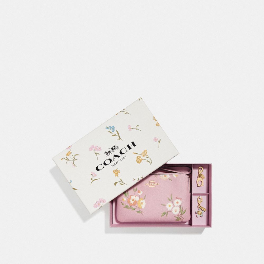 COACH FACTORY OUTLET PRICE CHART - F73016 - BOXED CORNER ZIP WRISTLET WITH TOSSED DAISY PRINT - CARNATION/GOLD