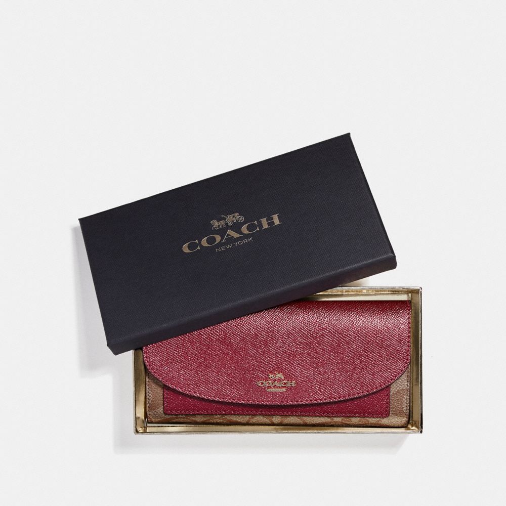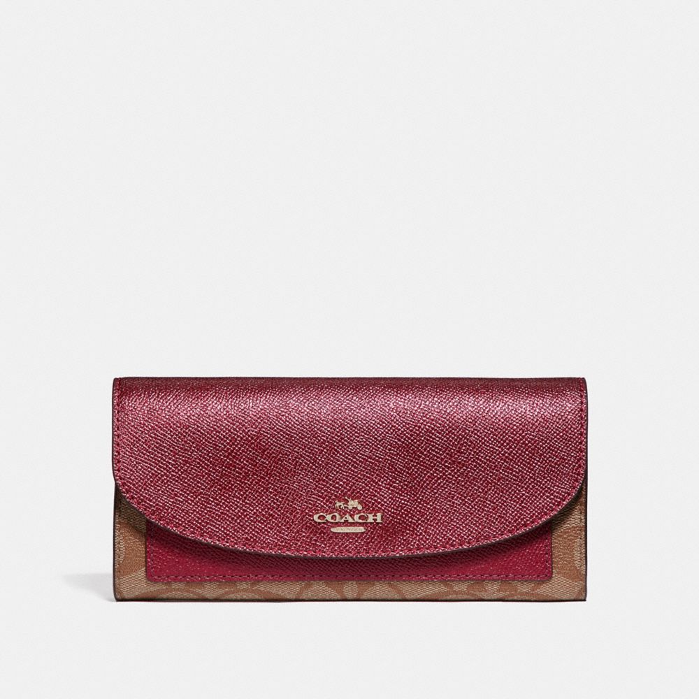 BOXED SLIM ENVELOPE WALLET WITH METALLIC COLORBLOCK (COACH F22714)
