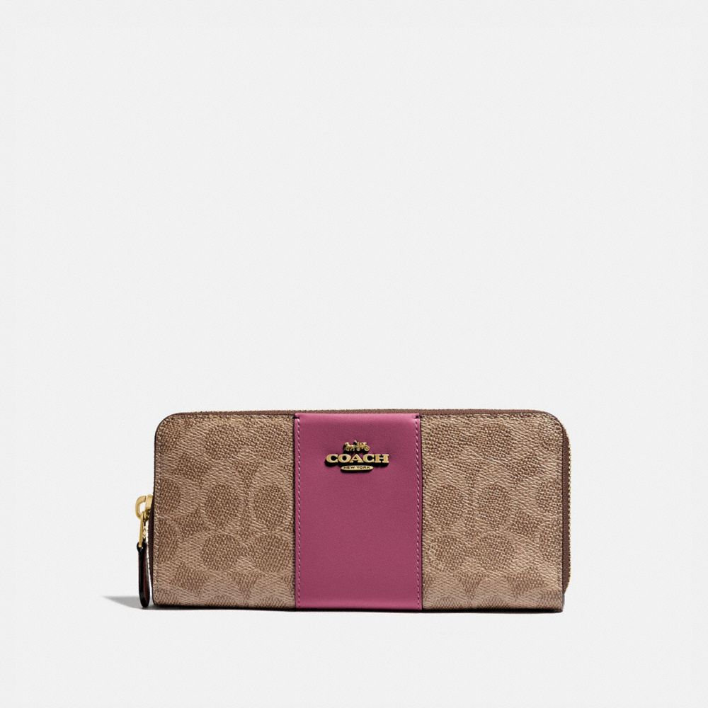 COACH FACTORY OUTLET PRICE CHART - 73739B - BOXED SLIM ACCORDION ZIP WALLET IN COLORBLOCK SIGNATURE CANVAS - B4/TAN DUSTY PINK