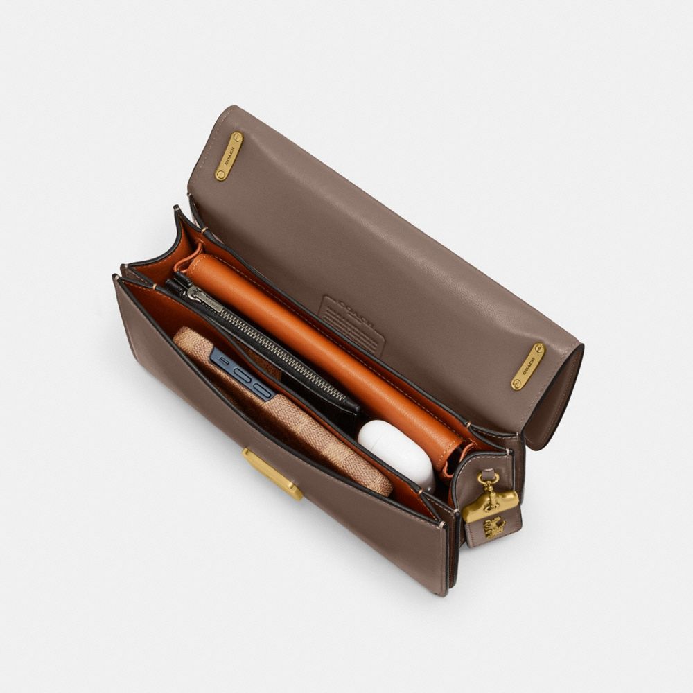| Luxe refined calf leather | Inside snap and multifunction pockets | Snap closure, leather lining | Outside open pocket | Adjustable strap with 21 1/2" drop for shoulder or crossbody wear | 9 1/4" (L) x 5 3/4" (H) x 2 1/4" (W)|Style No. CC416|