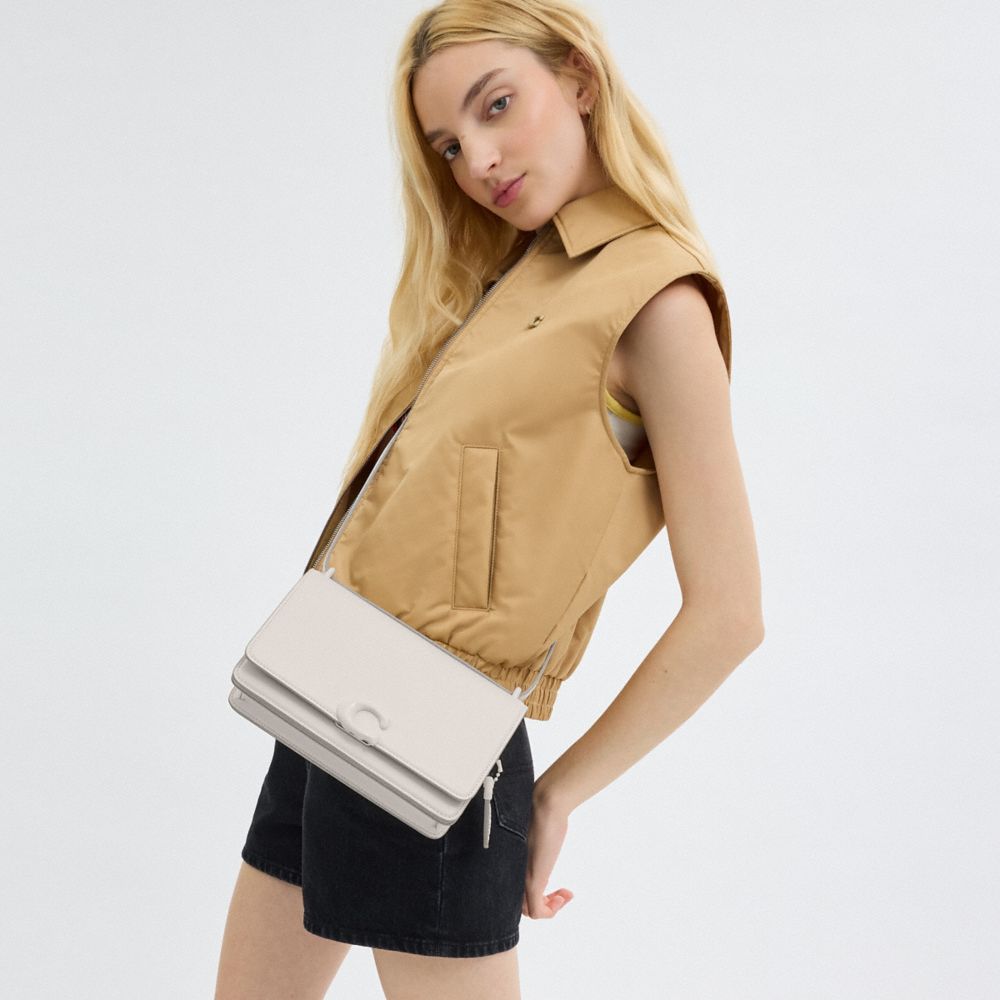 | Luxe refined calf leather | Inside snap and multifunction pockets | Snap closure, leather lining | Outside open pocket | Adjustable strap with 21 1/2" drop for shoulder or crossbody wear | 9 1/4" (L) x 5 3/4" (H) x 2 1/4" (W)|Style No. CR654|
