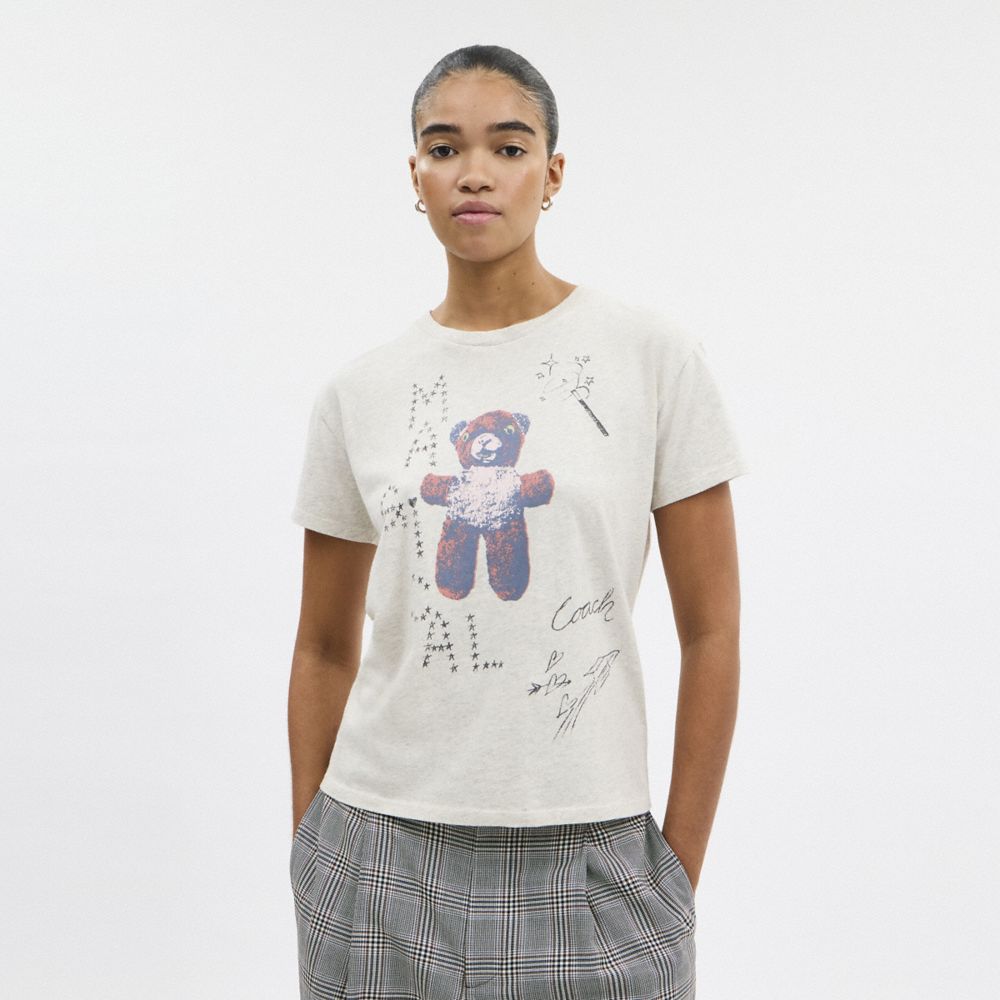 COACH FACTORY OUTLET PRICE CHART - CCY46 - BEAR GRAPHIC SHRUNKEN T-SHIRT IN ORGANIC COTTON - HEATHER GREY