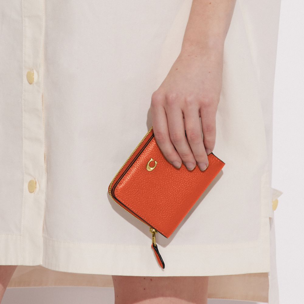 | Polished pebble leather | Six credit card slots | Full-length bill compartment | Snap closure | Outside zip coin pocket | 4 1/4" (L) x 3 3/4" (H) x 1/2" (W)|Style No. CD717|