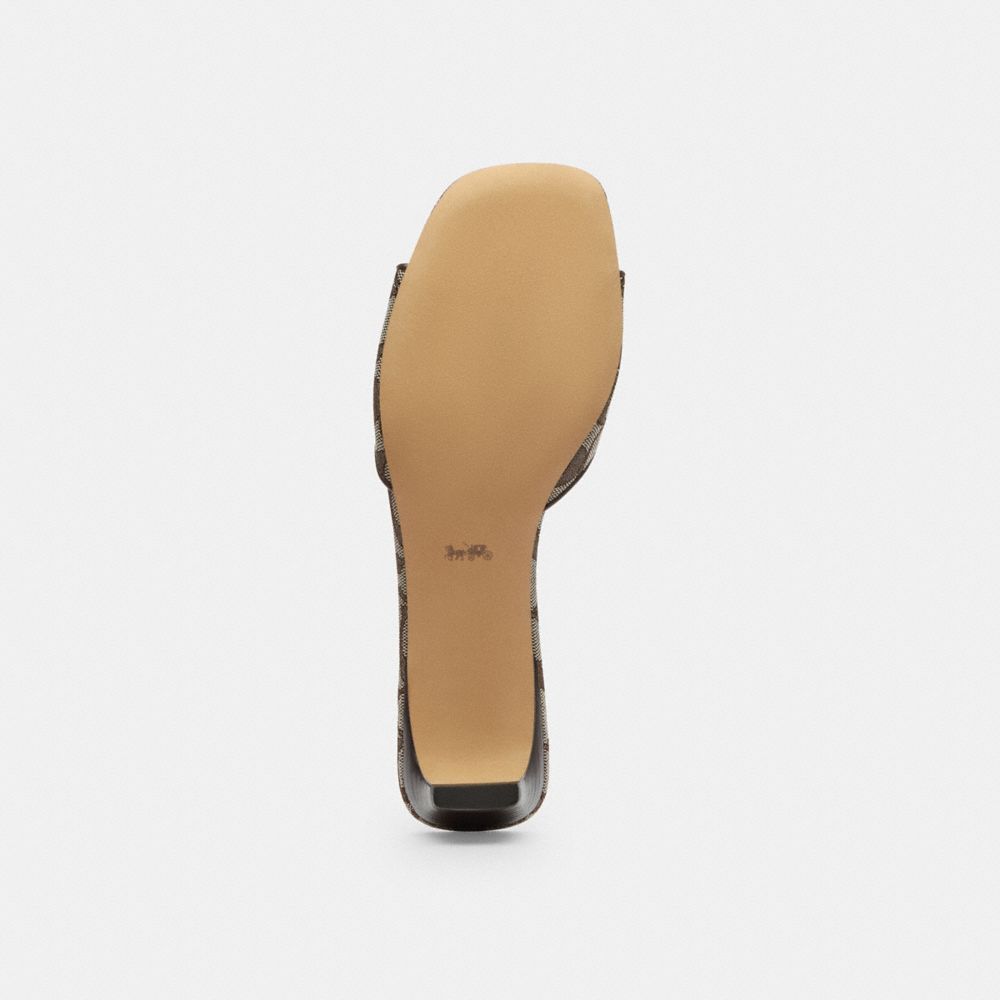 COACH FACTORY OUTLET PRICE CHART - CEE09 - BOW KITTEN HEEL SANDAL IN SIGNATURE JACQUARD - OAK/MAPLE