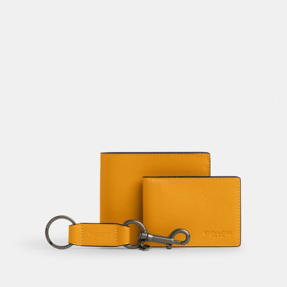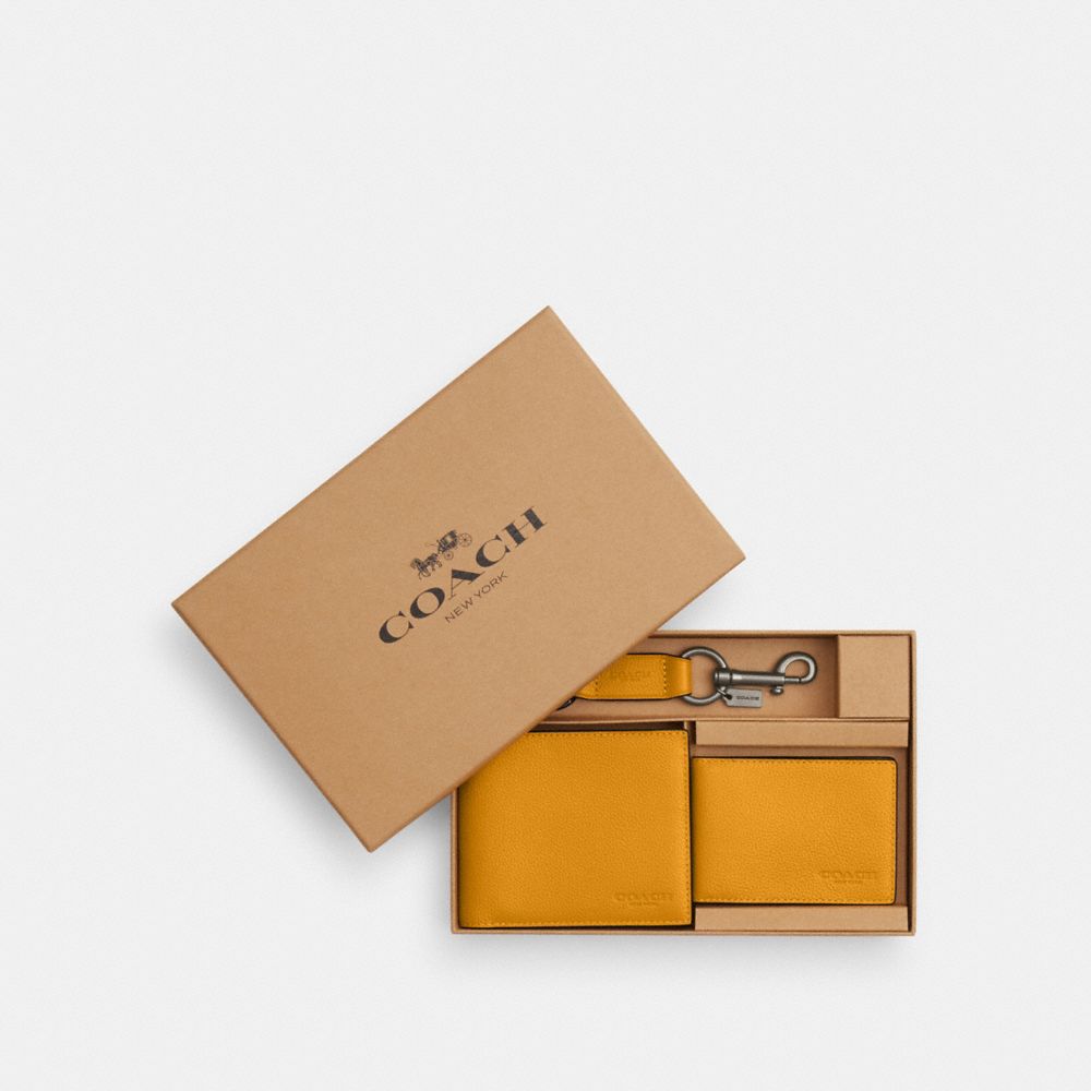 COACH FACTORY OUTLET PRICE CHART - CS433 - BOXED 3 IN 1 WALLET GIFT SET - BLACK ANTIQUE NICKEL/BUTTERCUP