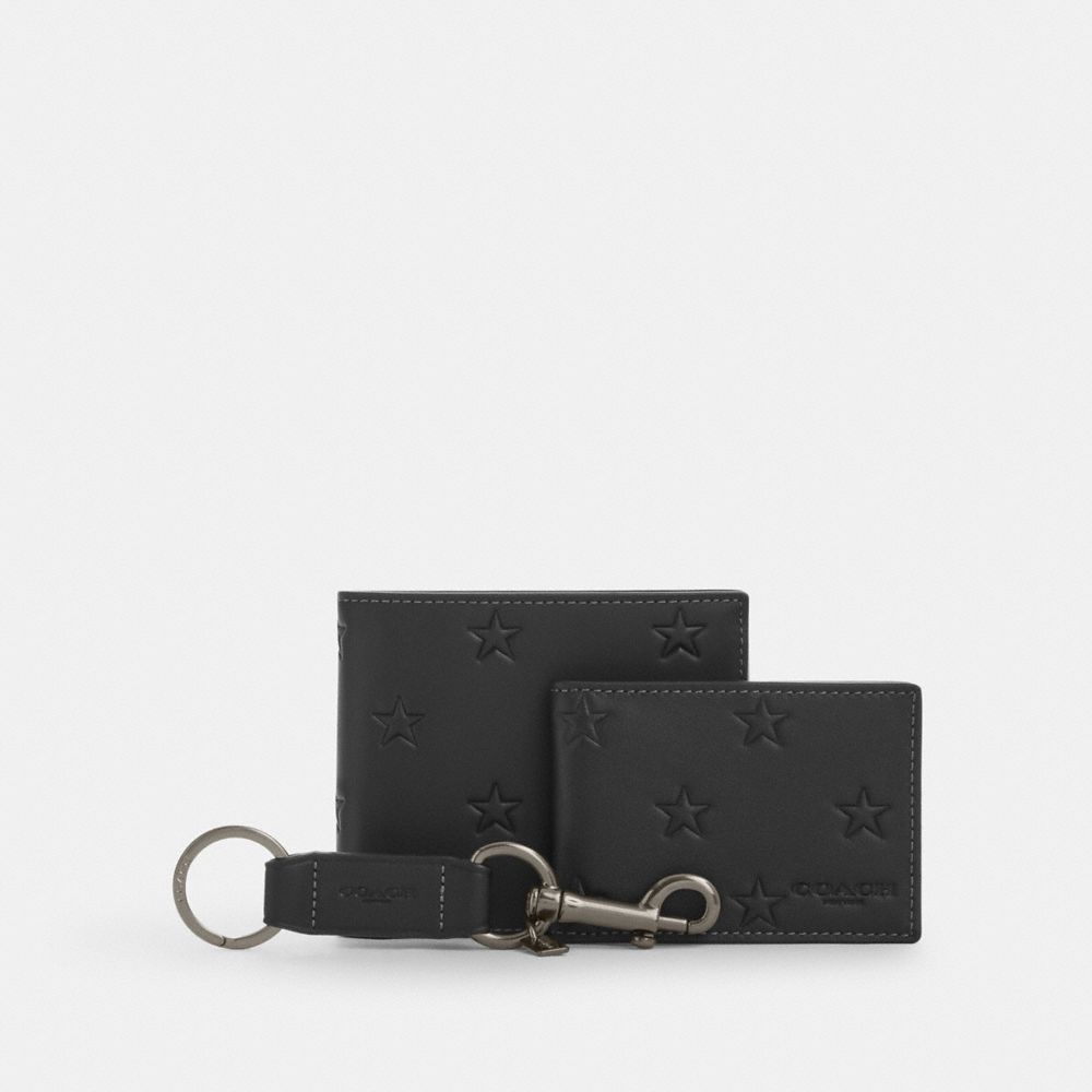 COACH FACTORY OUTLET PRICE CHART - CW350 - BOXED 3 IN 1 WALLET GIFT SET WITH STAR PRINT - GUNMETAL/BLACK/BLACK