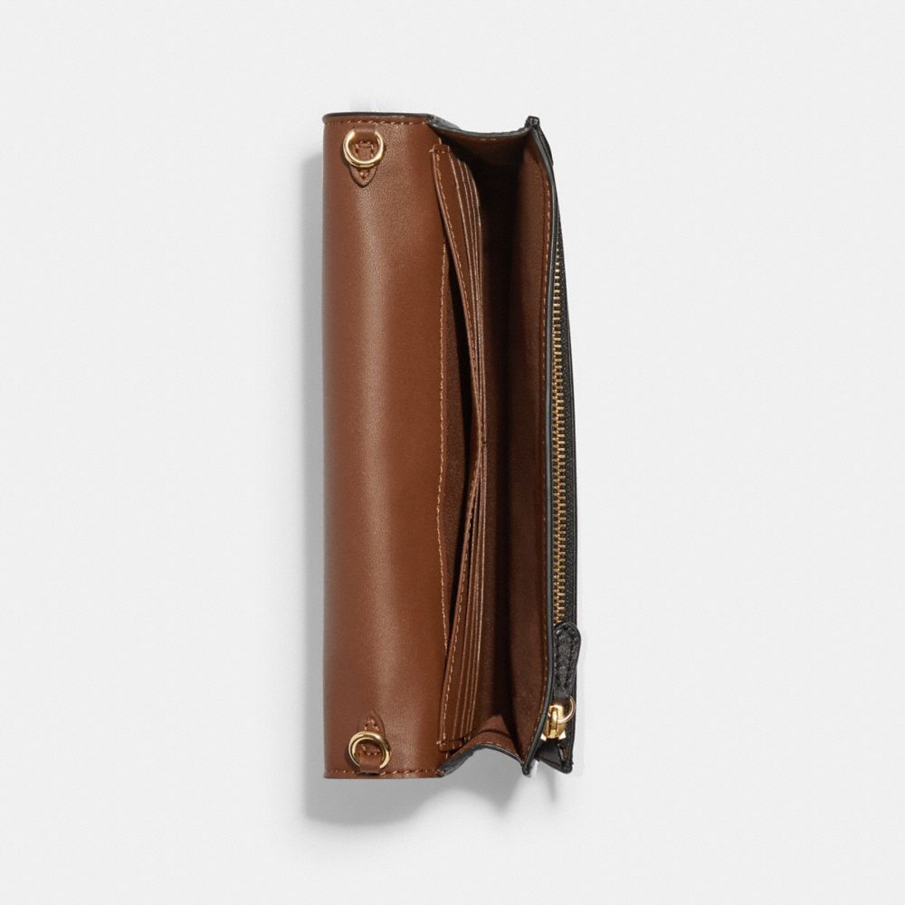 COACH FACTORY OUTLET PRICE CHART - C7354 - BOXED ANNA FOLDOVER CLUTCH CROSSBODY AND CARD CASE SET IN BLOCKED SIGNATURE CANVAS - GOLD/KHAKI BROWN MULTI