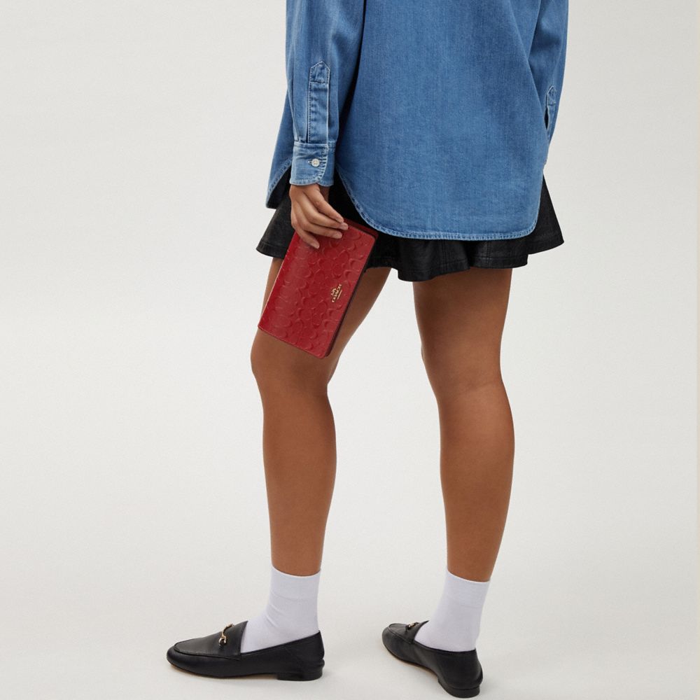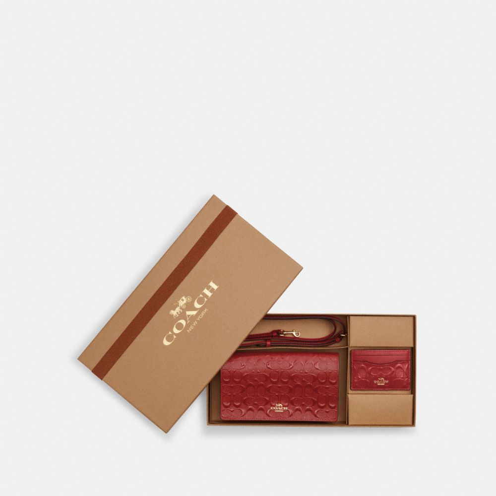 COACH FACTORY OUTLET PRICE CHART - CH359 - BOXED ANNA FOLDOVER CLUTCH CROSSBODY AND CARD CASE SET IN SIGNATURE LEATHER - GOLD/ELECTRIC RED