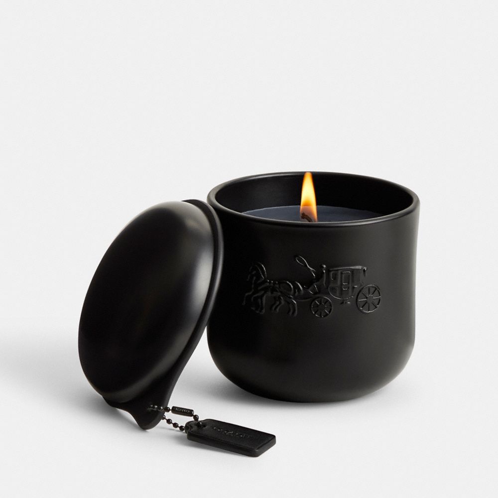 | 100% soy wax candle | Glass vessel, metal lid | 12 oz. | Fragrance notes: amber, musk, sandalwood | 33 hour burn time | Packaged in a Coach gift box | This item is excluded from all promotions, all sales are final, no refunds or exchanges|Style No. CP452|