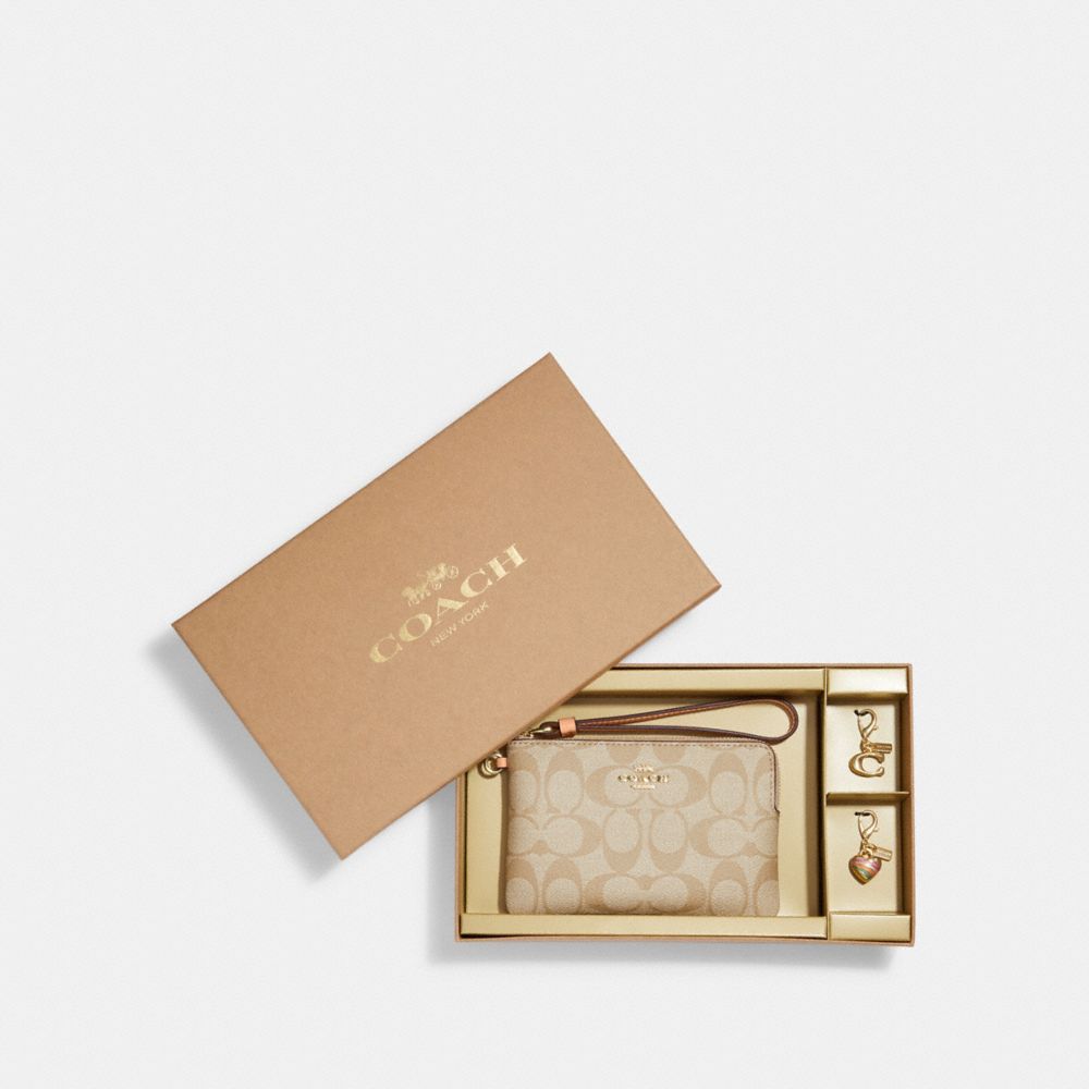 COACH FACTORY OUTLET PRICE CHART - C8726 - BOXED CORNER ZIP WRISTLET IN SIGNATURE CANVAS - GOLD/LIGHT KHAKI/FADED BLUSH