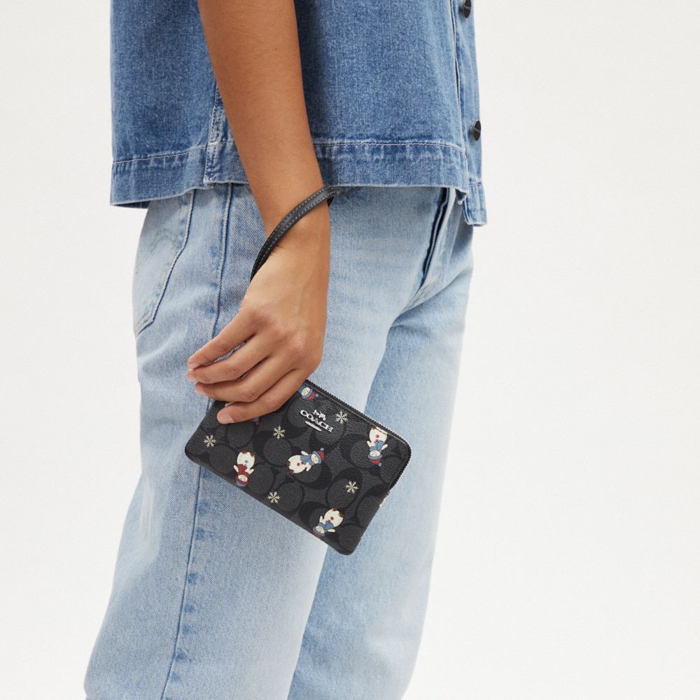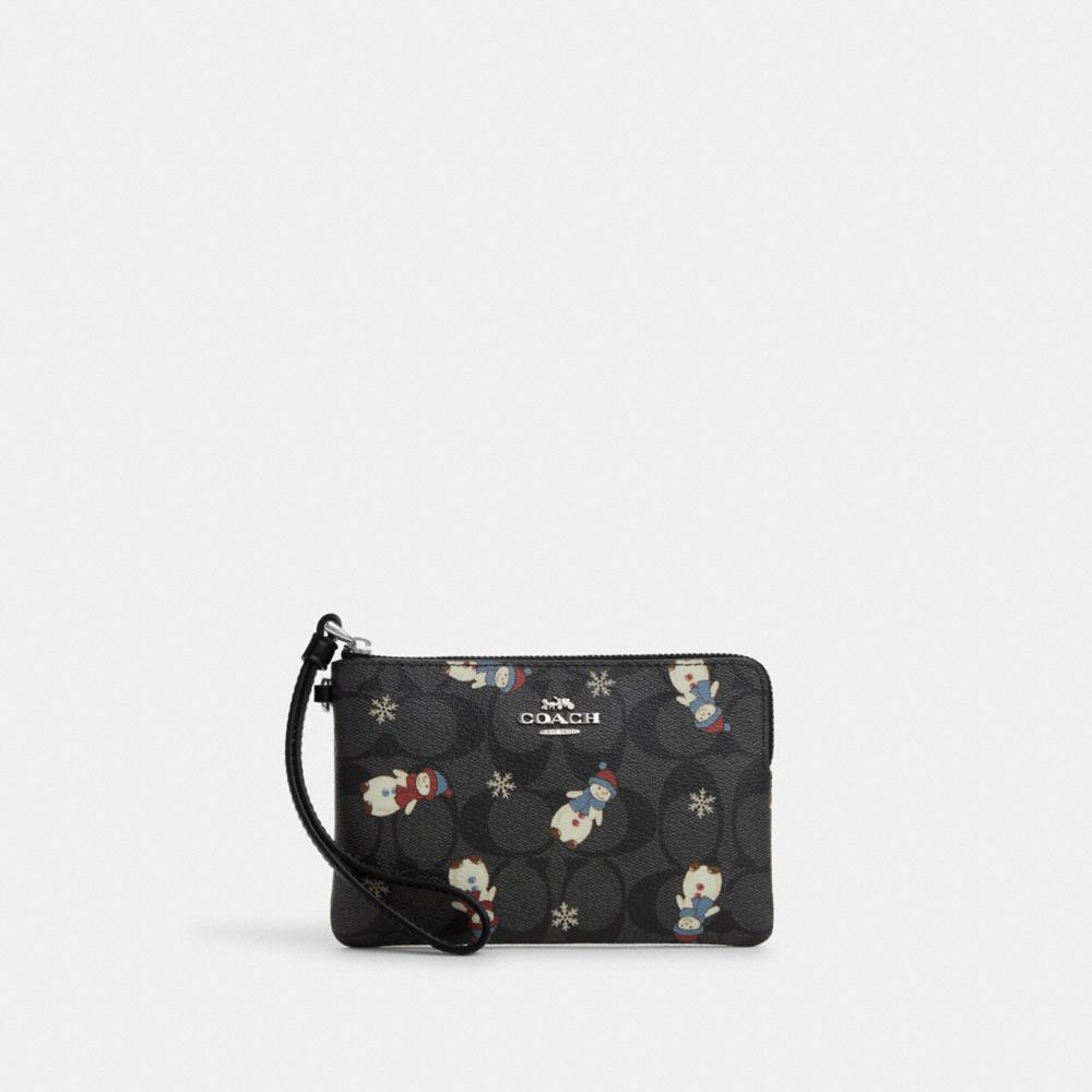 COACH FACTORY OUTLET PRICE CHART - CN048 - BOXED CORNER ZIP WRISTLET IN SIGNATURE CANVAS WITH SNOWMAN PRINT - SILVER/GRAPHITE/BLACK MULTI
