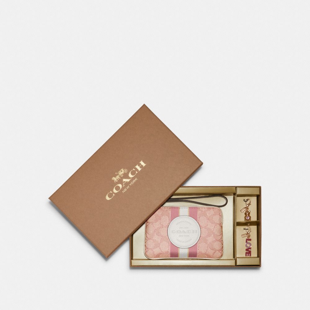 BOXED DEMPSEY CORNER ZIP WRISTLET IN SIGNATURE JACQUARD WITH COACH PATCH AND STRIPE (COACH C7444)