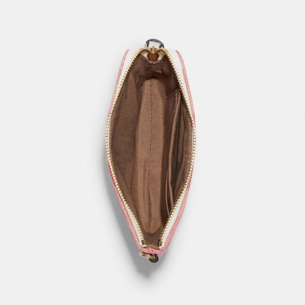 COACH FACTORY OUTLET PRICE CHART - C7444 - BOXED DEMPSEY CORNER ZIP WRISTLET IN SIGNATURE JACQUARD WITH COACH PATCH AND STRIPE - GOLD/CHALK/PINK MULTI