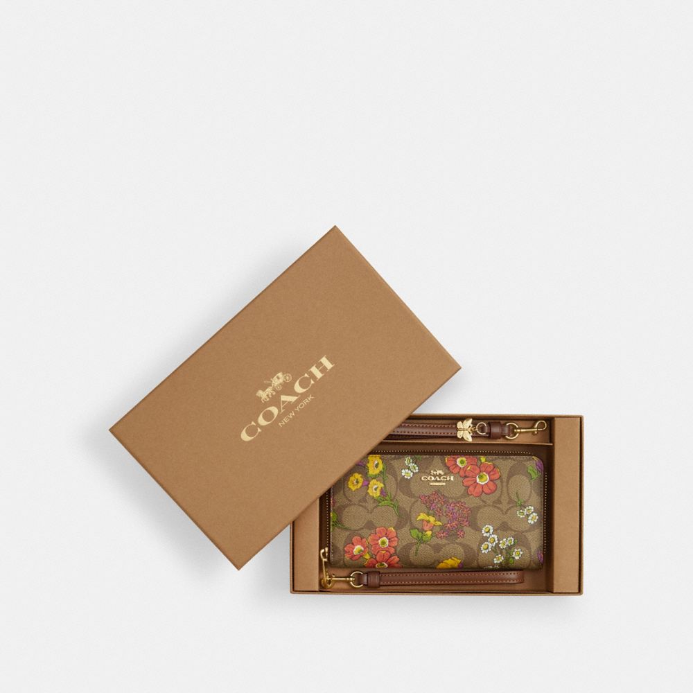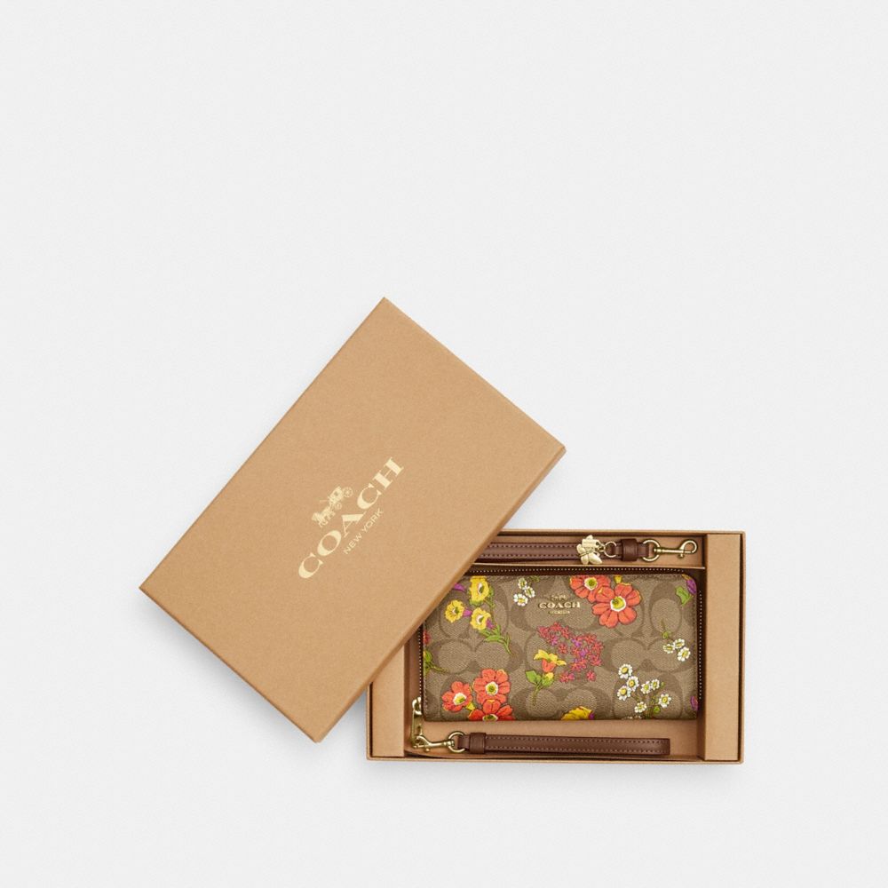 COACH FACTORY OUTLET PRICE CHART - CR632 - BOXED LONG ZIP AROUND WALLET IN SIGNATURE CANVAS WITH FLORAL PRINT - GOLD/KHAKI MULTI