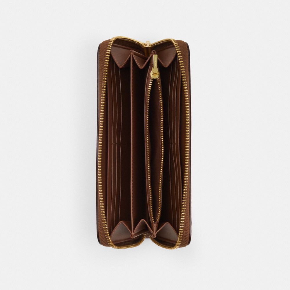 | Signature coated canvas and smooth leather | 12 credit card slots | Full-length bill compartments | Inside zip coin pocket | Zip-around closure | Detachable wrist strap | 7 1/2" (L) x 4" (H) x 1" (W) | Fits all iPhone and Samsung Galaxy phones | Includes interchangeable strap with charm | Packaged in a Coach gift box with ribbon|Style No. CR632|